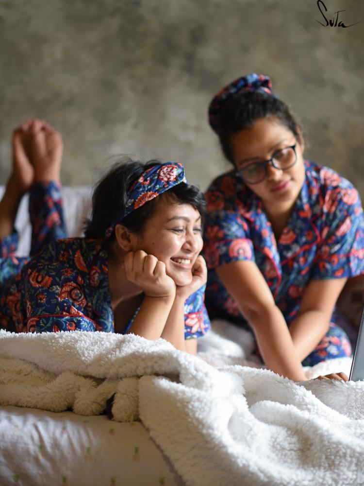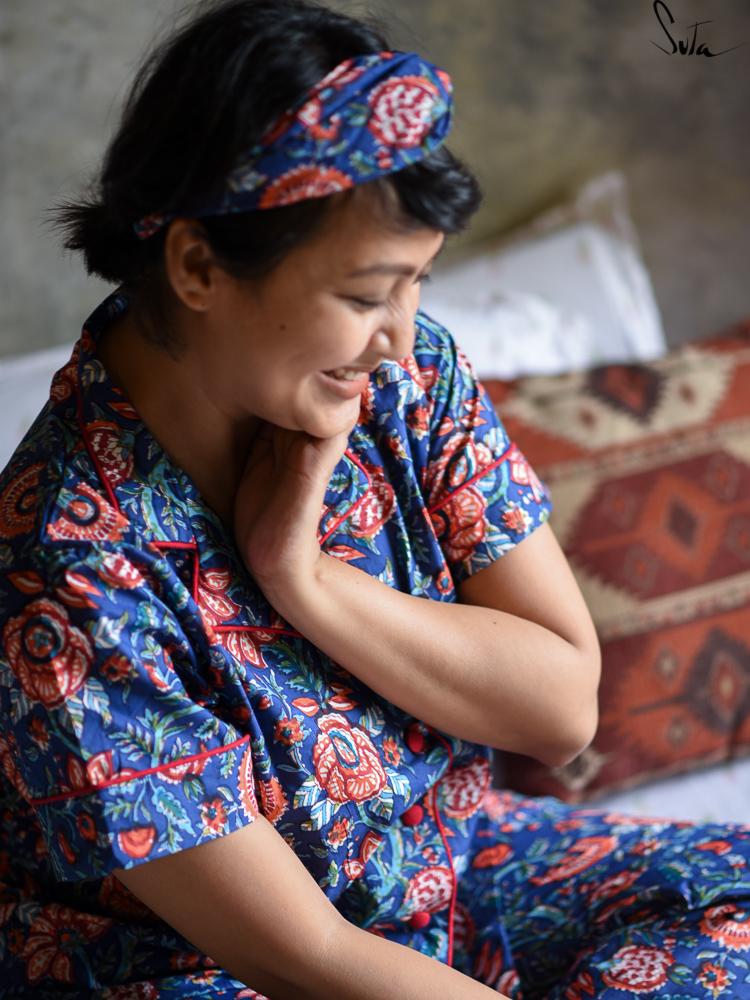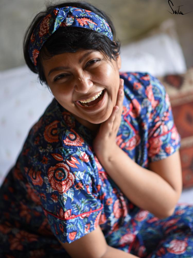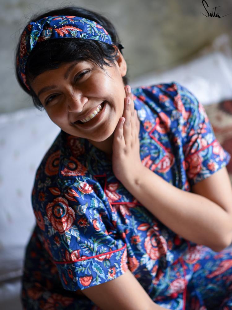Ta the model is wearing our lounge wear called as Slumber Party https://suta.in/products/slumber-party