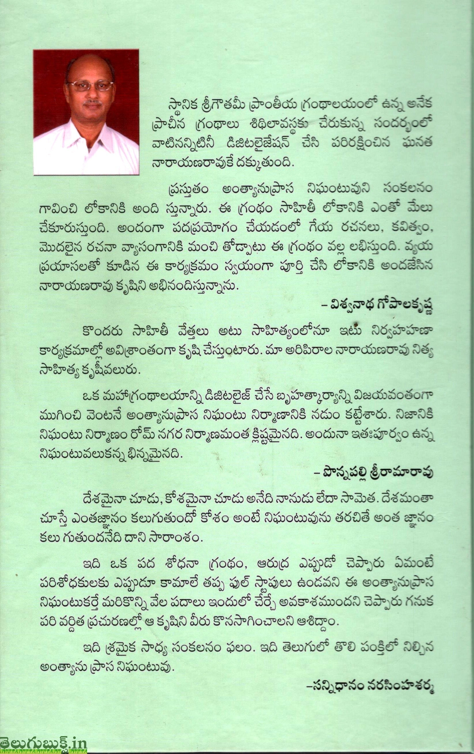 Anthyanu Prasa Nigantuvu(Telugu Bashalo Vacchina Nigantuvulaku Vibhinnamaina Mottamodati Nigantuvu)