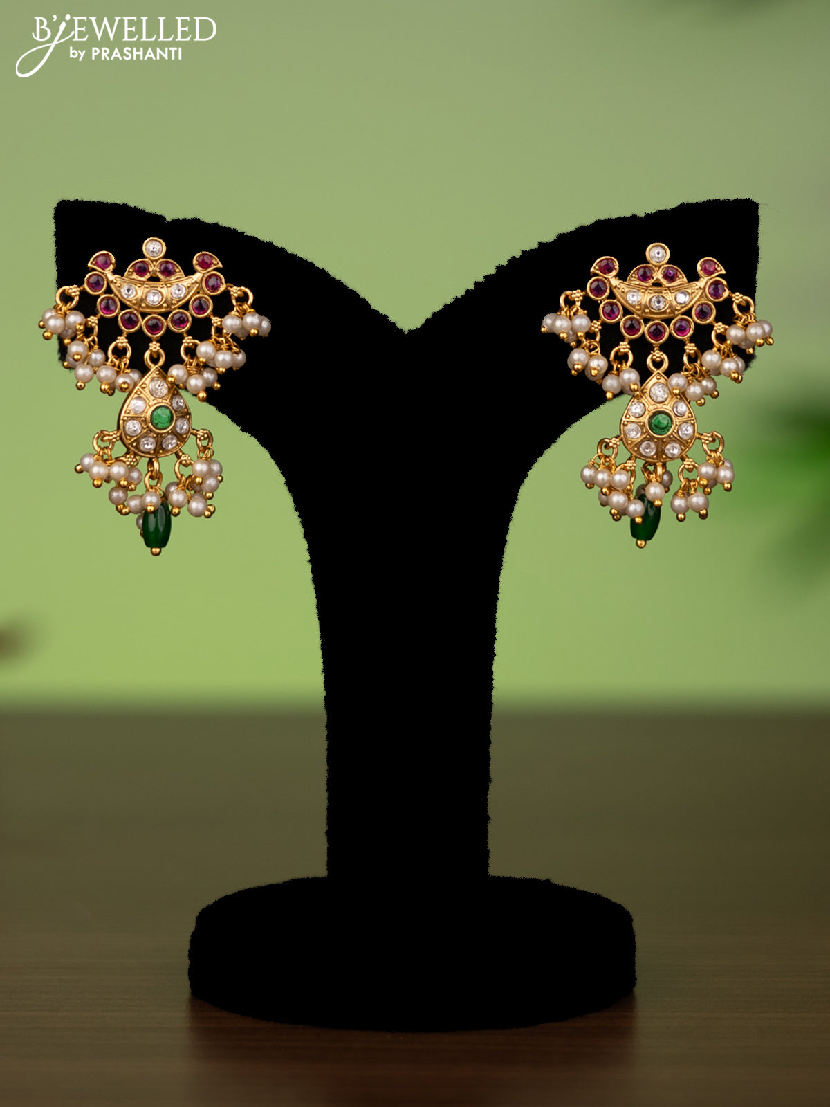 Antique attigai necklace with kemp & kumdan stones and pearl hangings