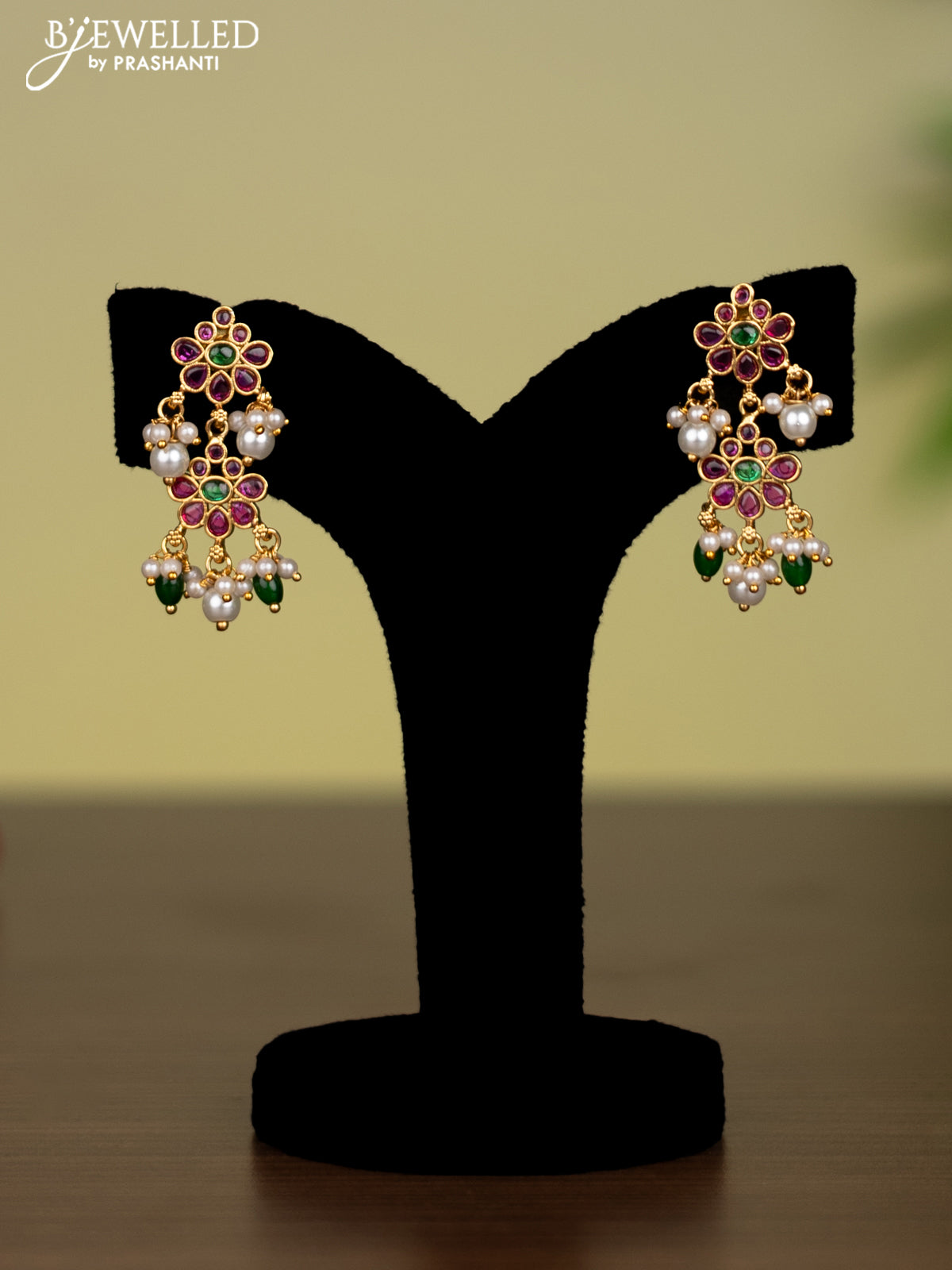 Antique attigai necklace with kemp stones and pearl & green beads hanging