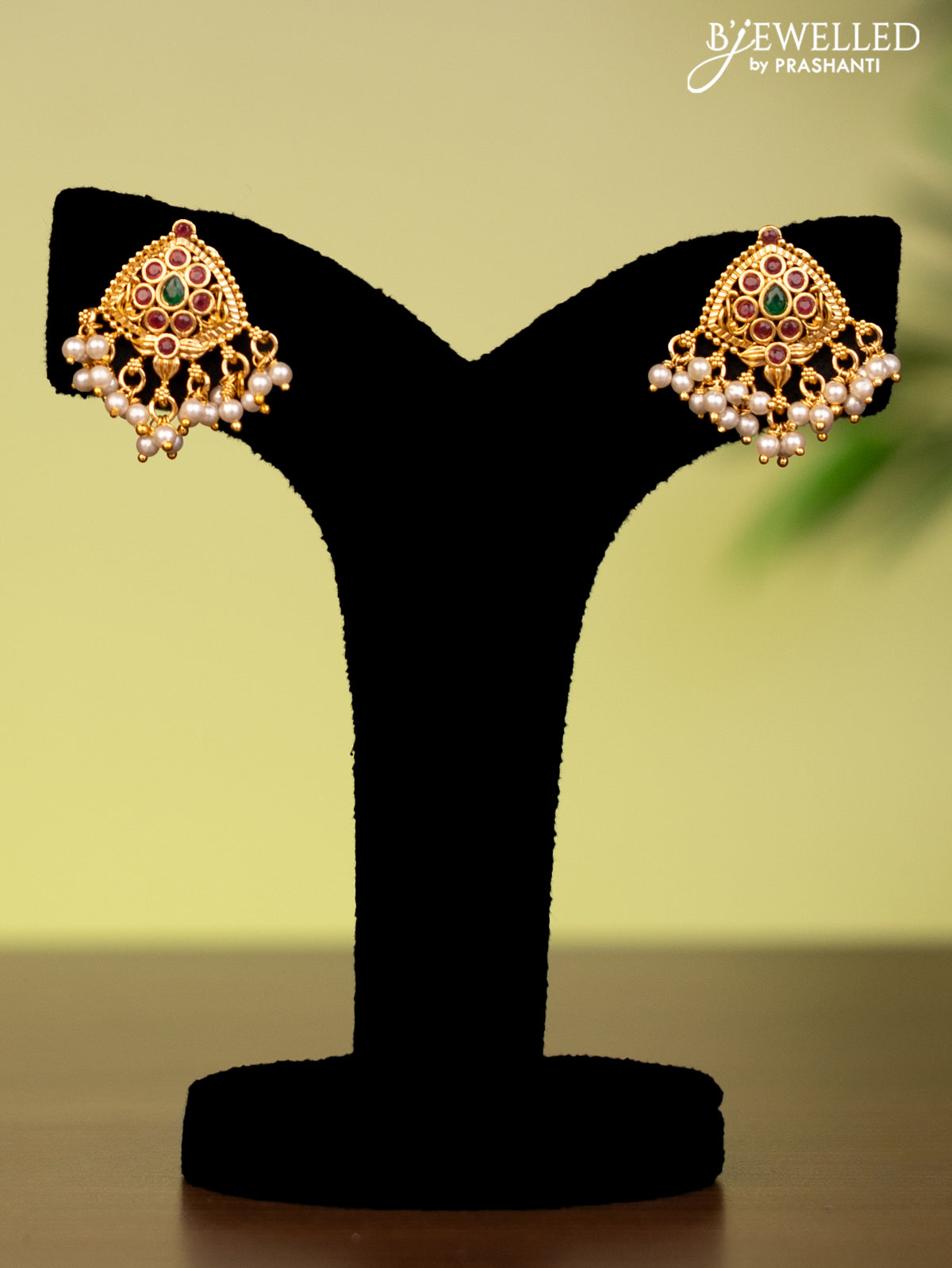 Antique attigai necklace with kemp stones and pearl hangings
