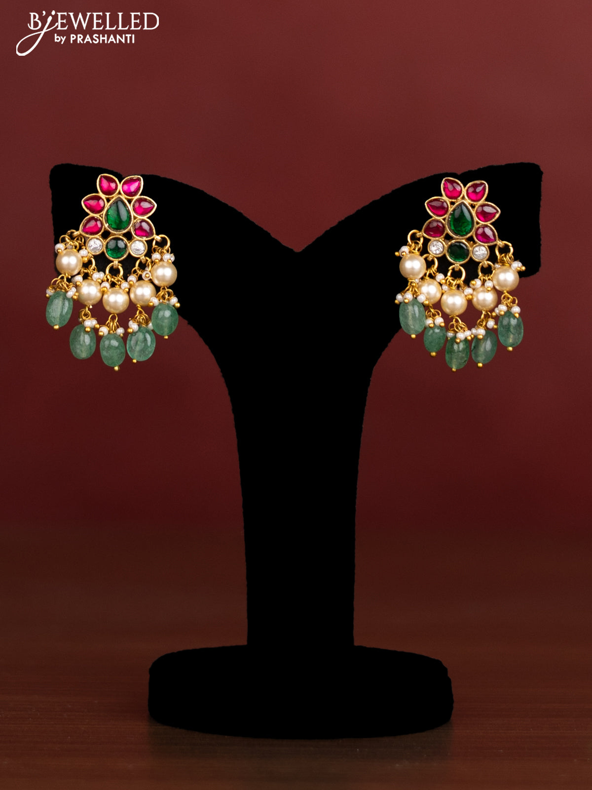 Antique beaded green necklace double peacock pendant with jadau kundan stones and pearl & beads hangings
