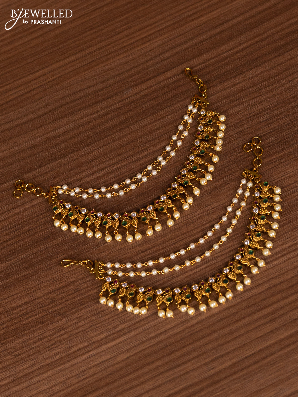 Antique bridal set lakshmi design with kemp cz stones and pearl & golden beads hanging