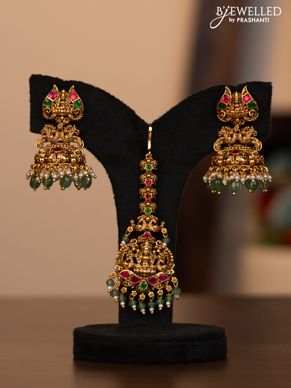 Antique combo set lakshmi pendant with jadau stones and pearl & green beads hanging