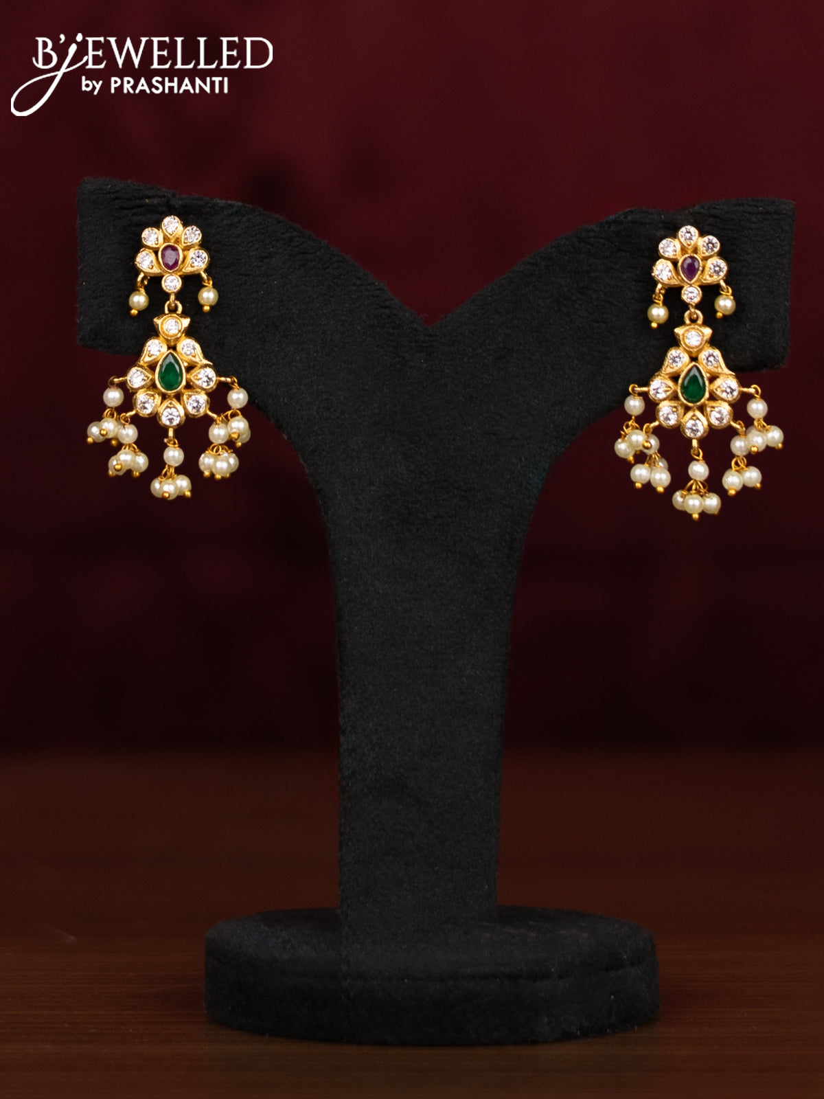 Antique guttapusalu haaram with kemp & cz stones and pearl hangings