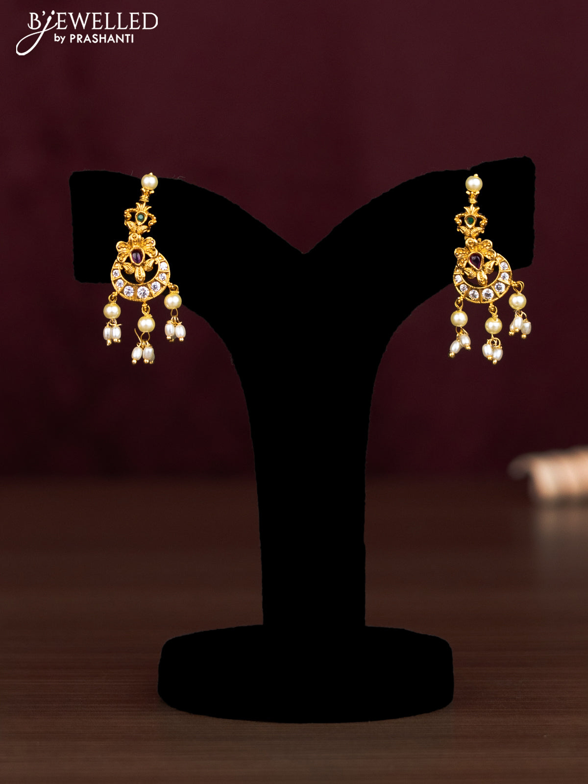 Antique guttapusalu necklace chandbali & manga design with kemp & cz stones and pearl hangings