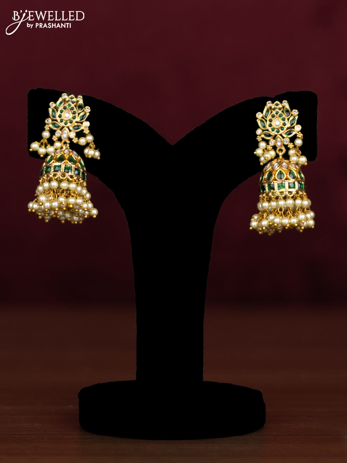 Antique guttapusalu necklace floral design with emerald & cz stones and pearl hangings