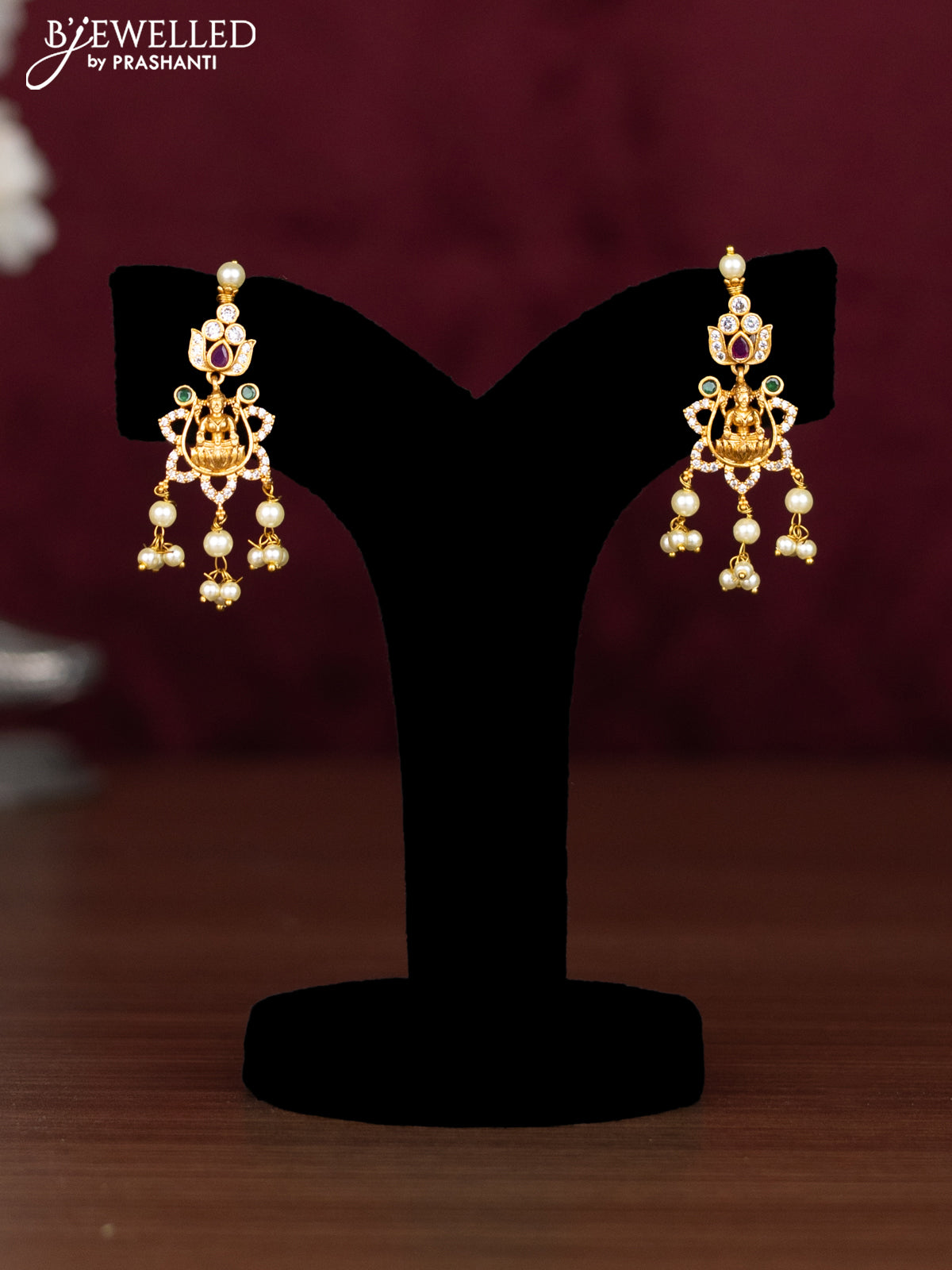 Antique guttapusalu necklace lakshmi design with kemp & cz stones and pearl hangings