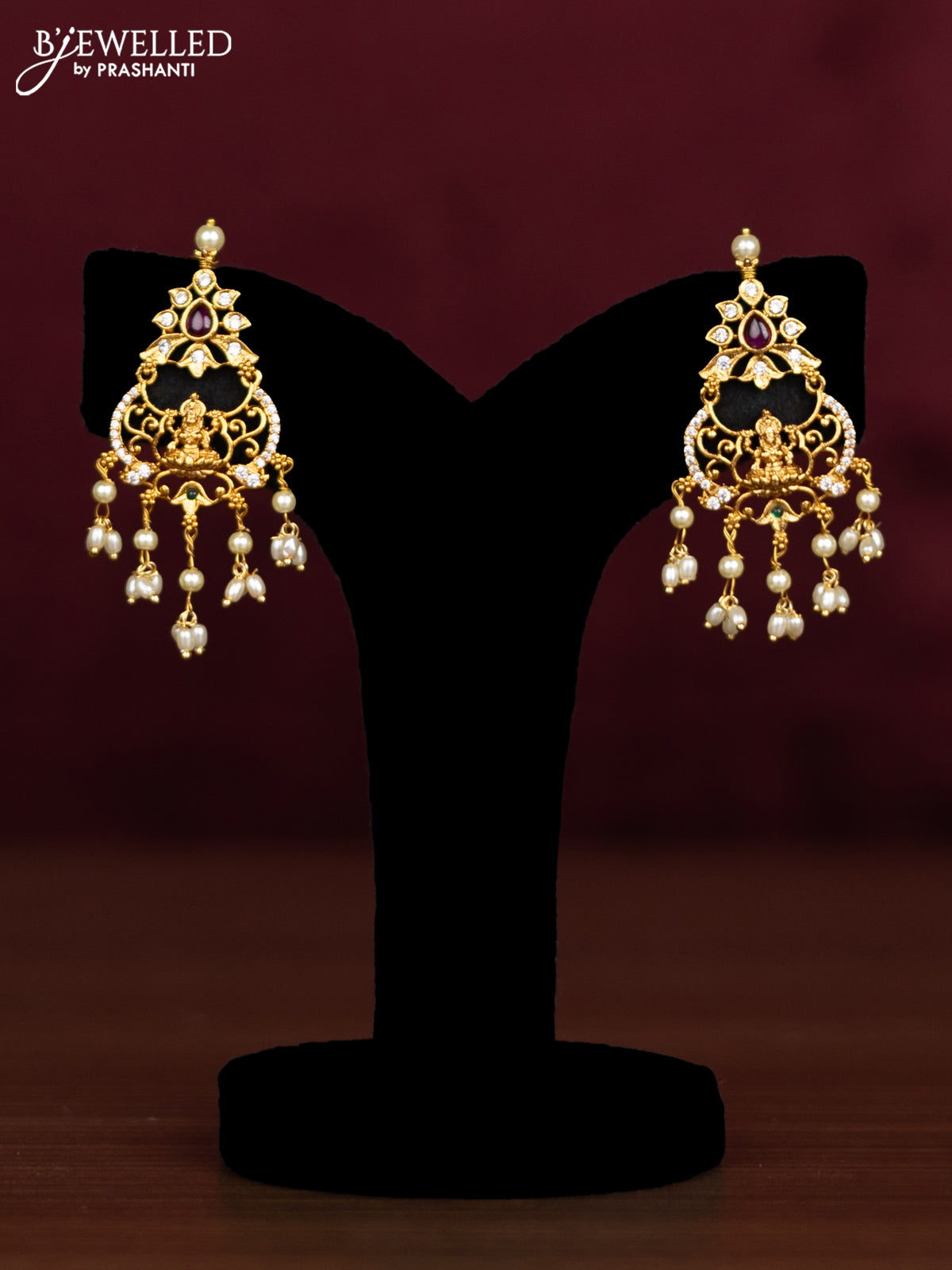 Antique guttapusalu necklace lakshmi design with kemp & cz stones and pearl hangings