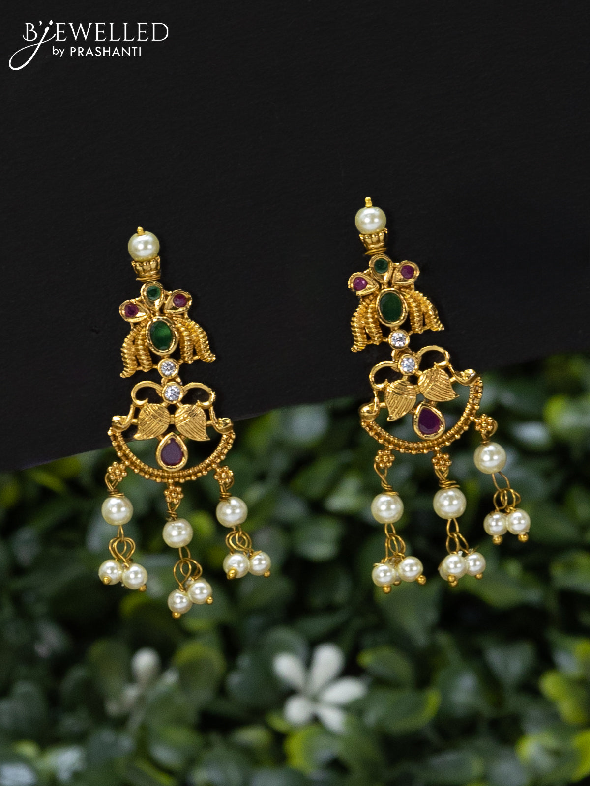 Antique guttapusalu necklace with kemp & cz stones and pearl hangings