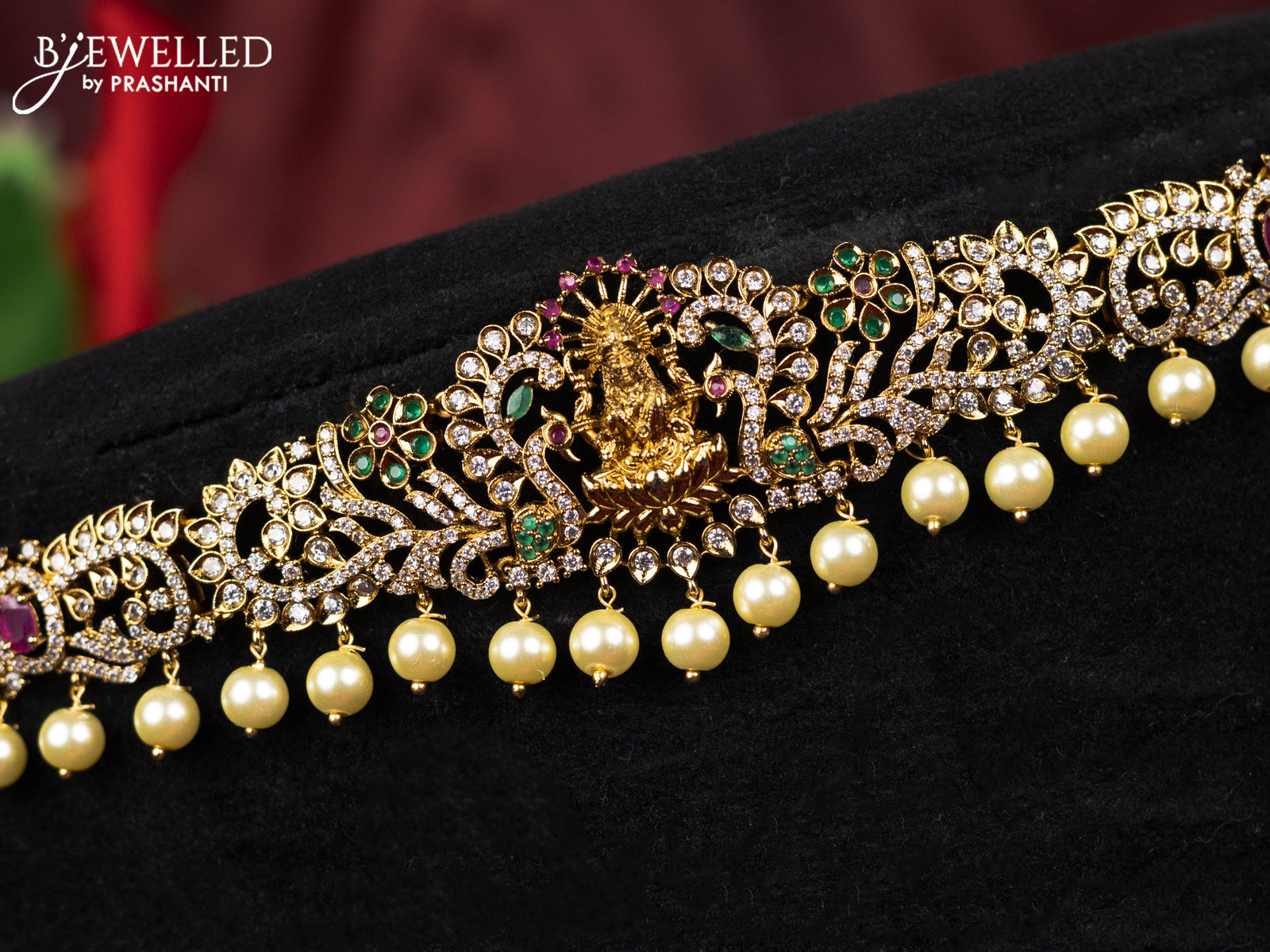 Antique hip belt lakshmi design with kemp & cz stones and pearl hangings