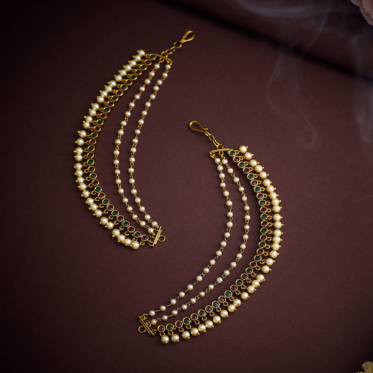 Achieve an ethnic look with Kushal's collection of antique matils. Made of quality copper alloy this matil will elevate your conventional look when paired with traditional attire. Our synthetic stones and beads ensure the shimmering look of the jewellery. This gold-polished antique matil will add a fresh look to your traditional fashion.