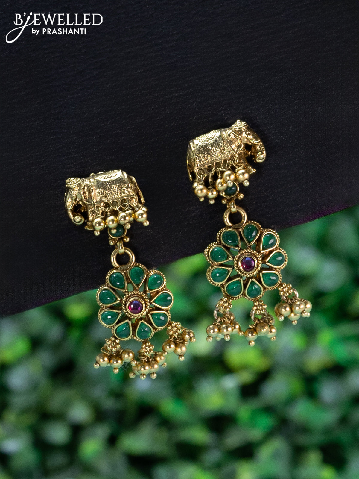Antique necklace elephant & floral design with kemp stones and golden beads hangings