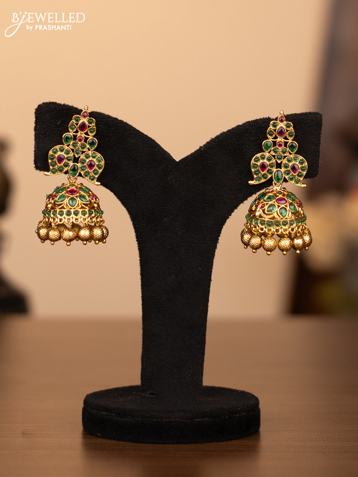 Antique necklace manga pattern with kemp stones and golden beads hanging