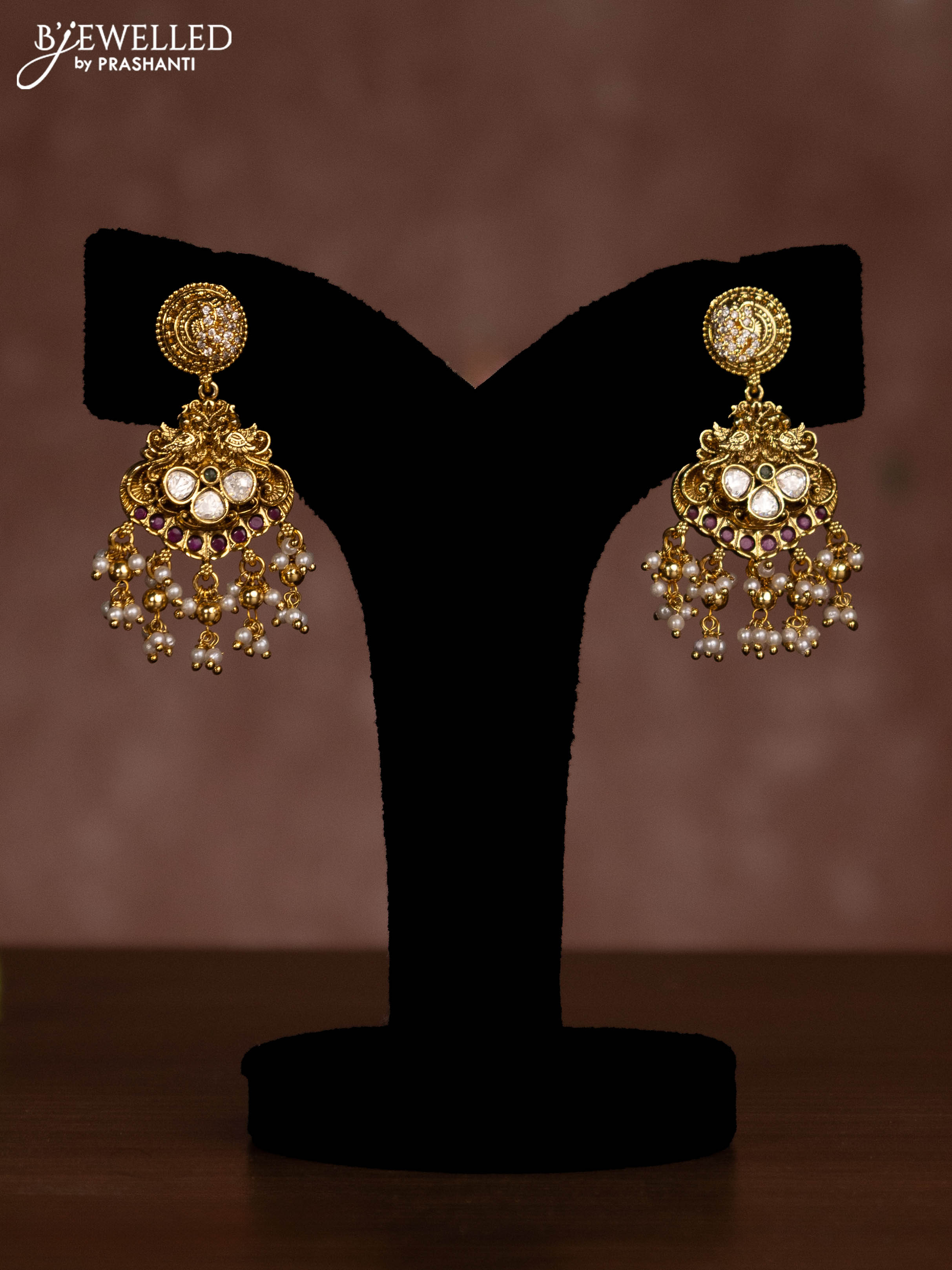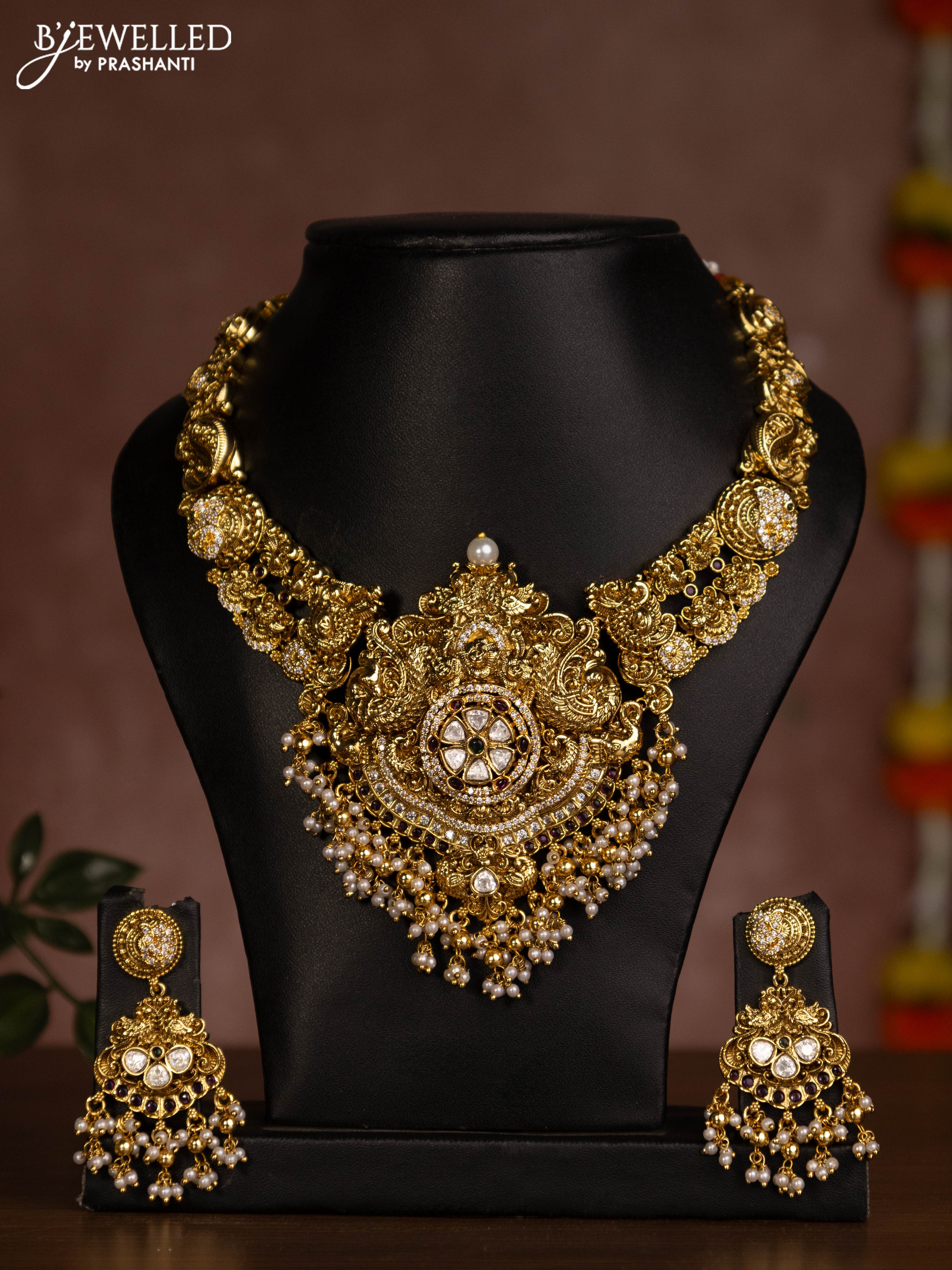 Antique necklace peacock design with kemp & kundan stones and pearl hangings