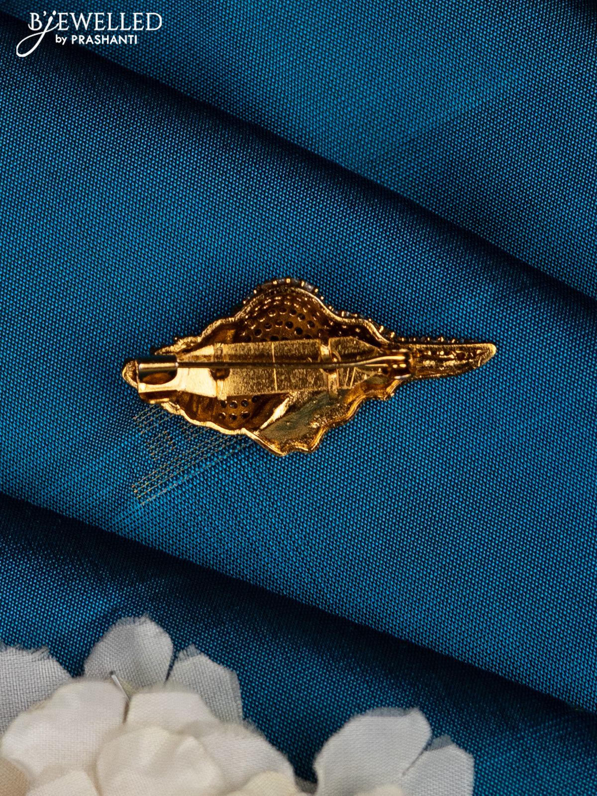 Antique saree pin shanku design with kemp and cz stones