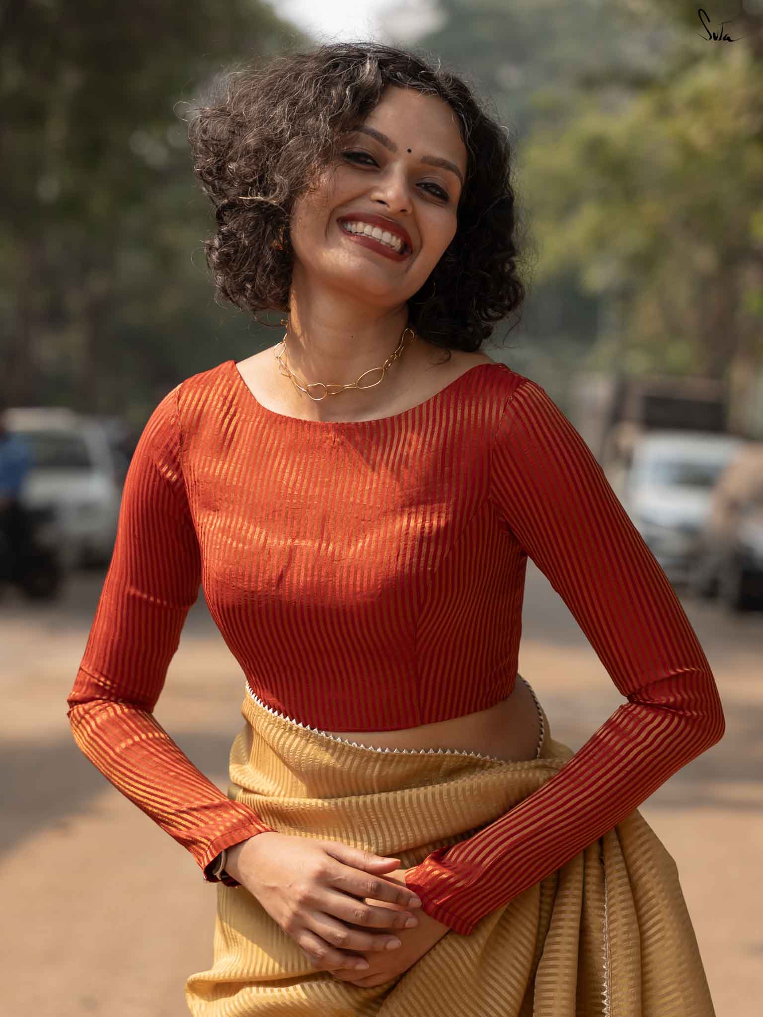 Note: Our blouse comes with an extra margin, allowing you to easily size up for a perfect fit.