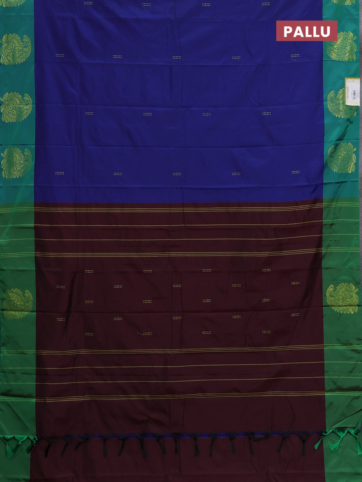 Arani semi silk saree blue shade and green with zari woven buttas and paisley zari woven butta border