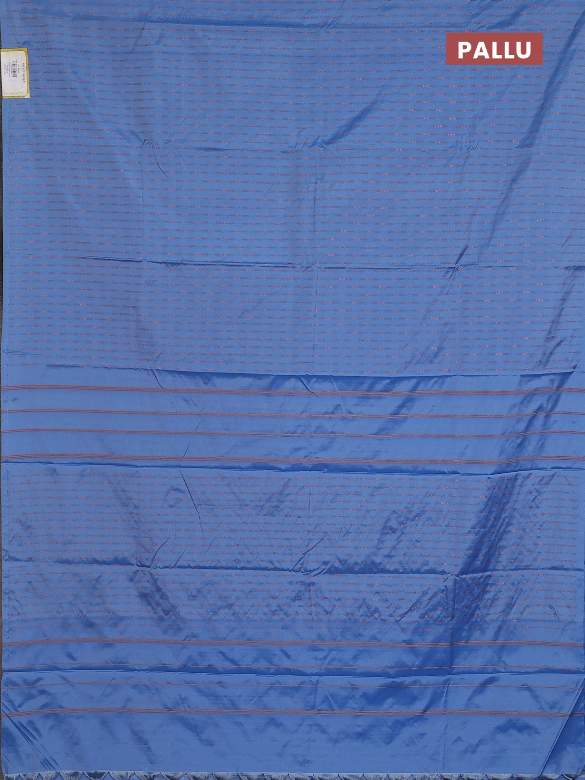 Arani semi silk saree blue shade with copper zari woven buttas in borderless style
