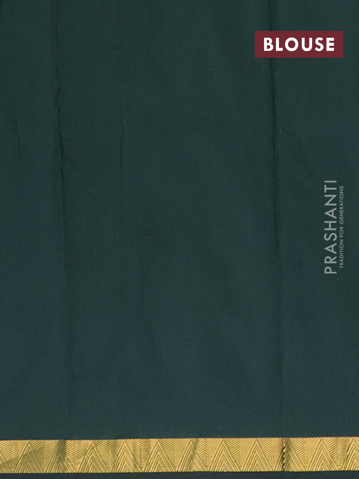 Arani semi silk saree bottle green with zari woven temple buttas and zari woven border