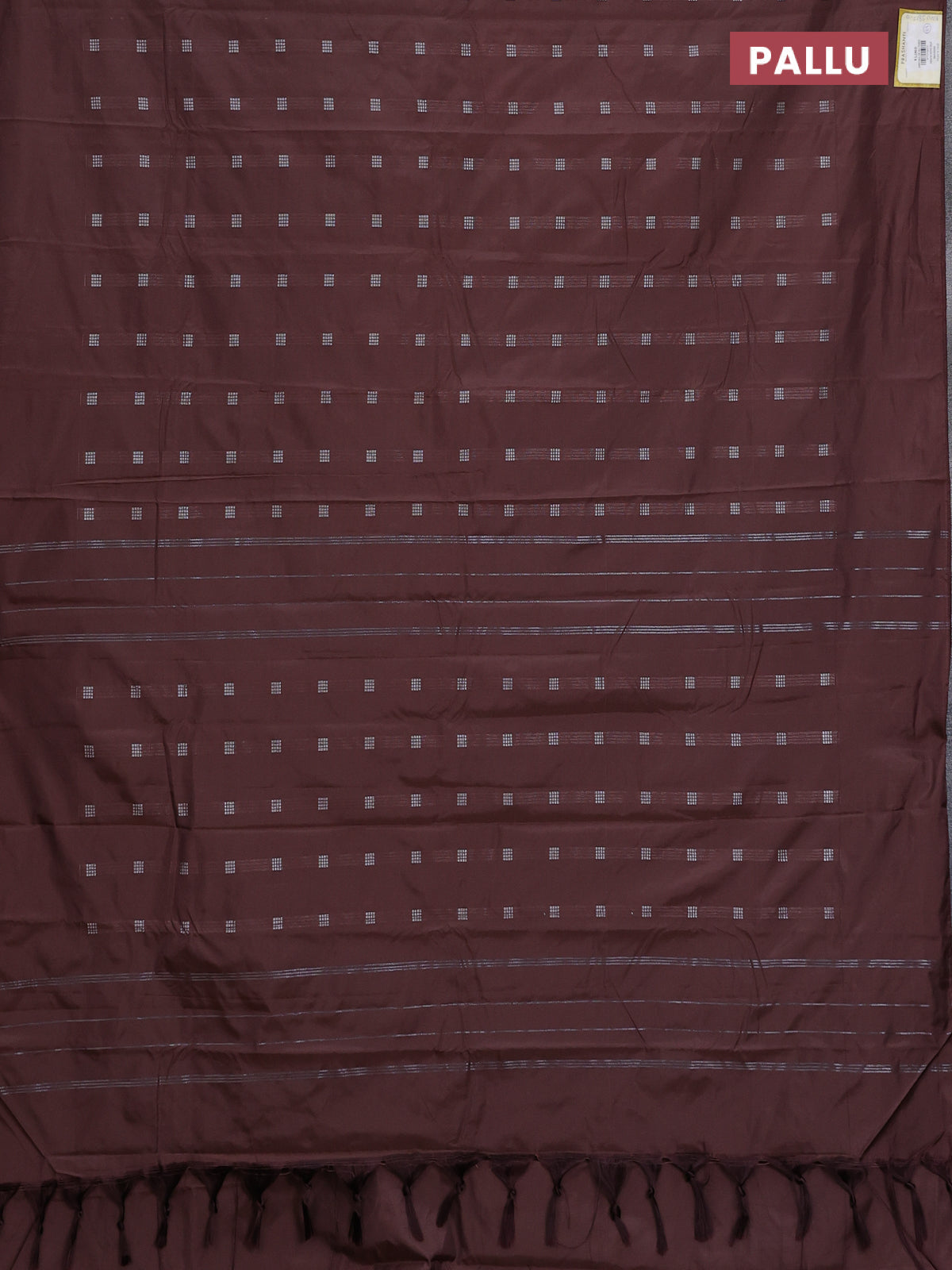 Arani semi silk saree brown with silver zari woven buttas in borderless style