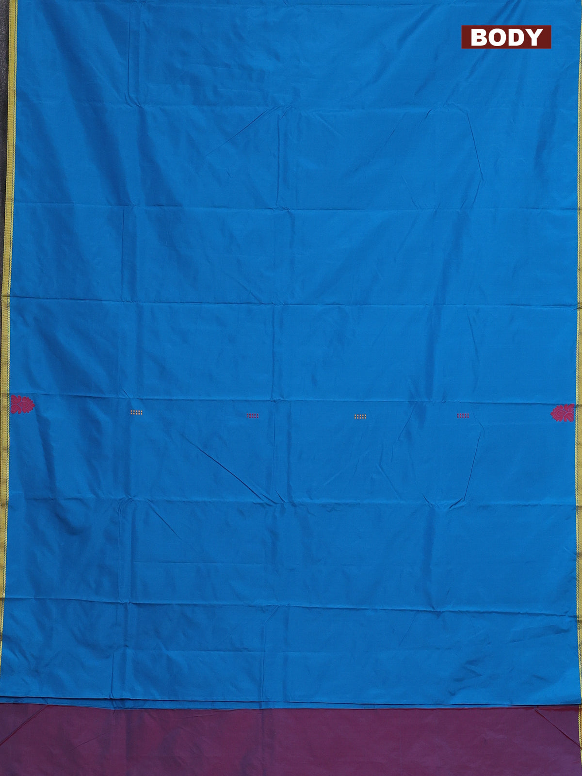 Arani semi silk saree cs blue and dual shade of maroon with thread woven buttas and thread woven butta border