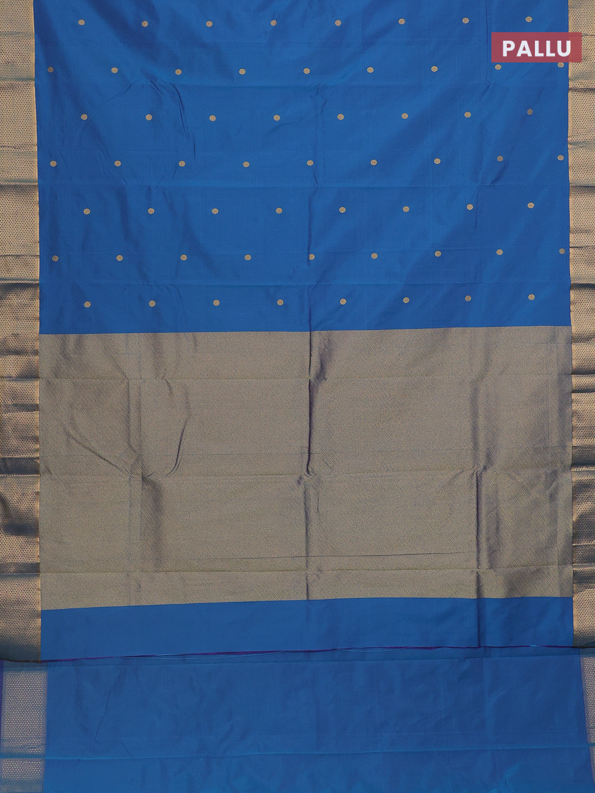 Arani semi silk saree dual shade of cs blue with zari woven buttas and zari woven border