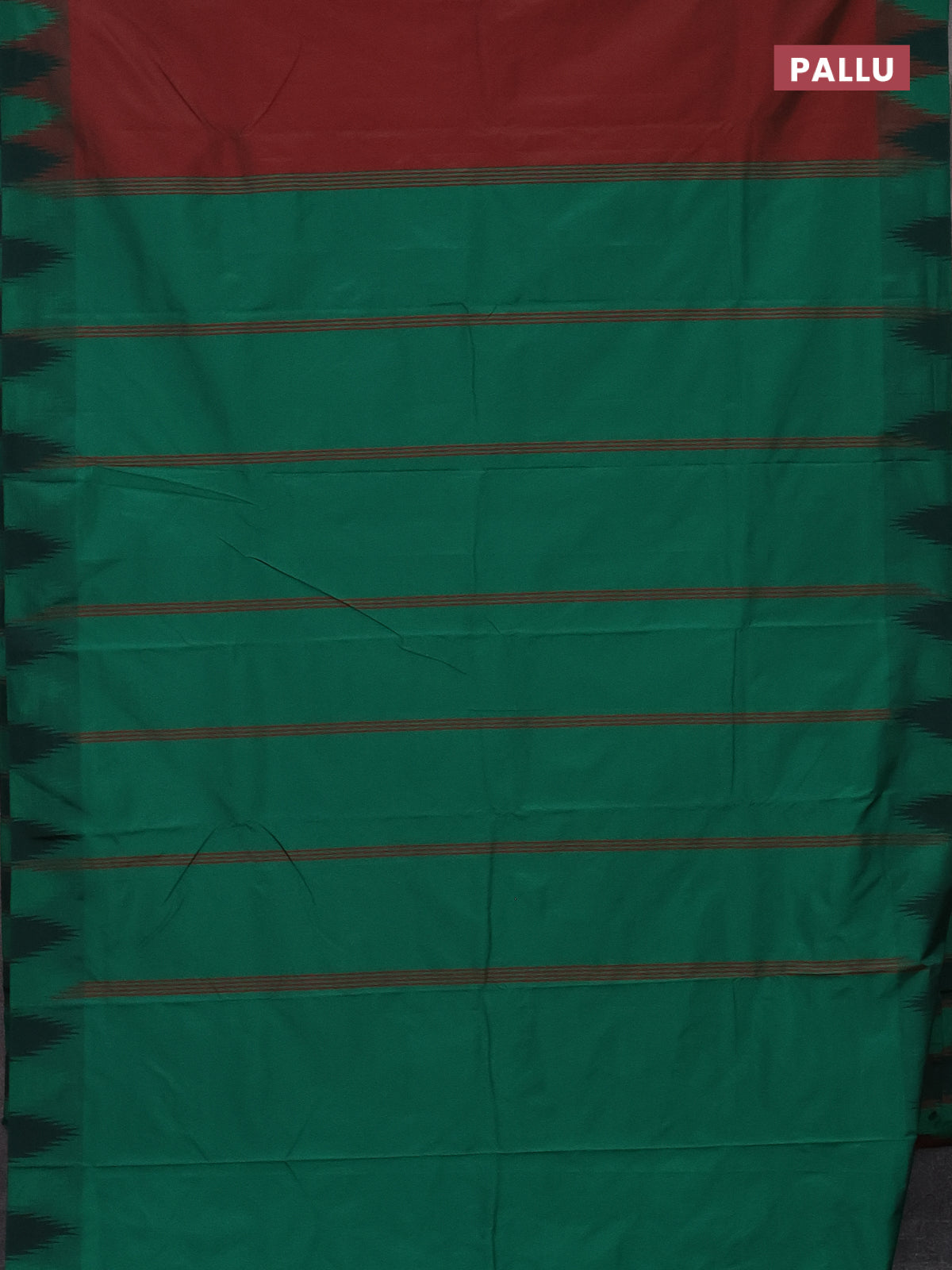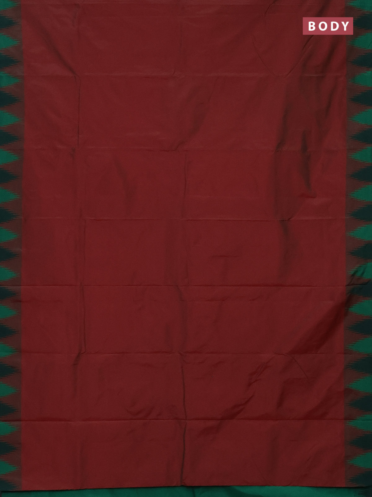 Arani semi silk saree dual shade of maroon and green with plain body and temple design border