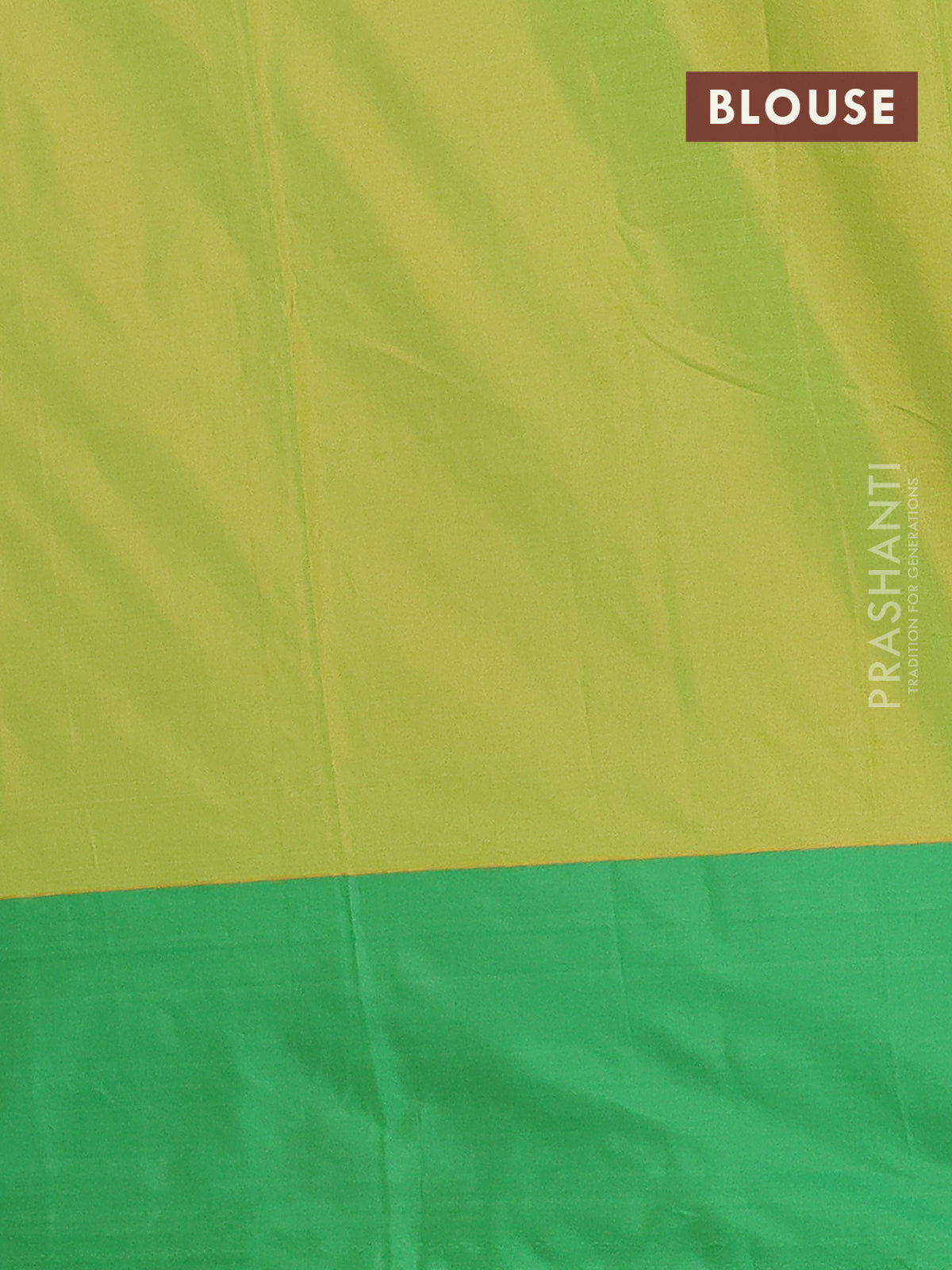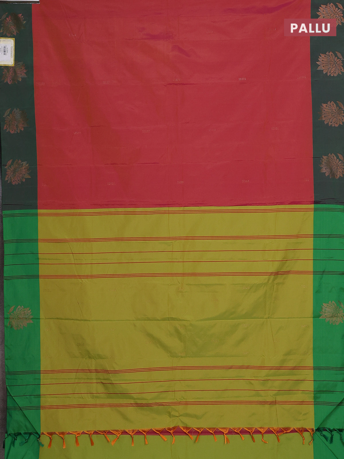 Arani semi silk saree dual shade of pinkish mustard and green with zari woven buttas and zari woven butta border