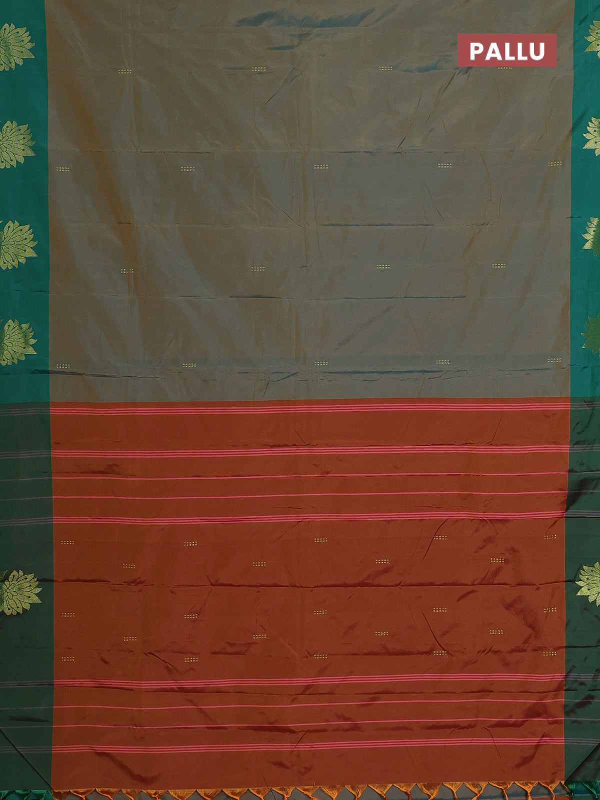 Arani semi silk saree dual shade of teal and green with zari woven buttas and zari woven butta border