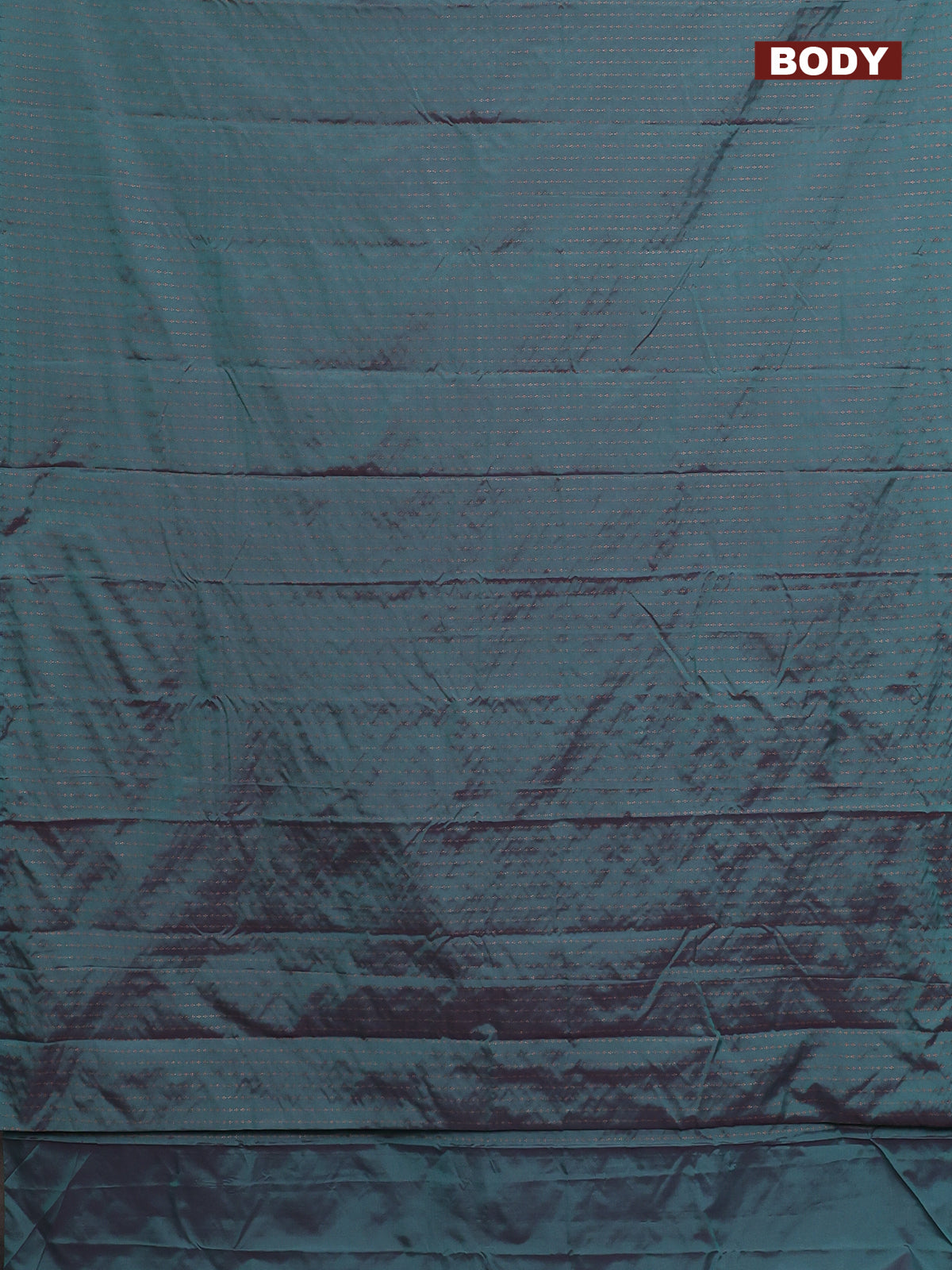 Arani semi silk saree dual shade of teal green with allover copper zari weaves in borderless style