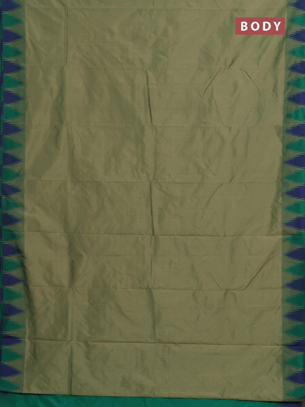 Arani semi silk saree green shade with plain body and temple design border