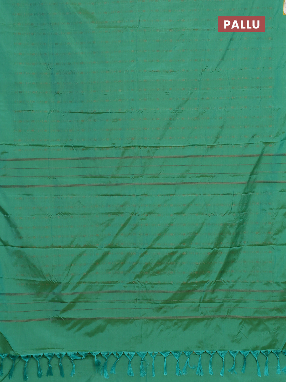Arani semi silk saree green with allover copper zari weaves in borderless style