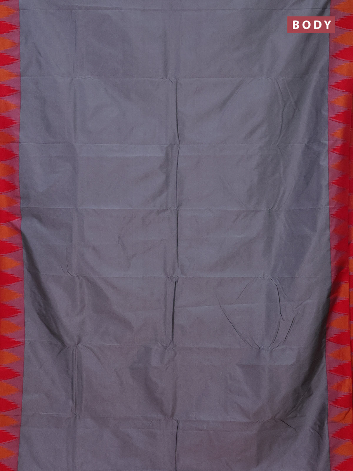 Arani semi silk saree grey and dual shade of pink with plain body and temple design border