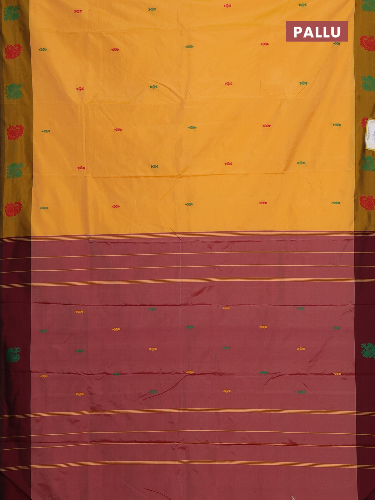 Arani semi silk saree mango yellow and maroon with thread woven buttas and thread woven butta border