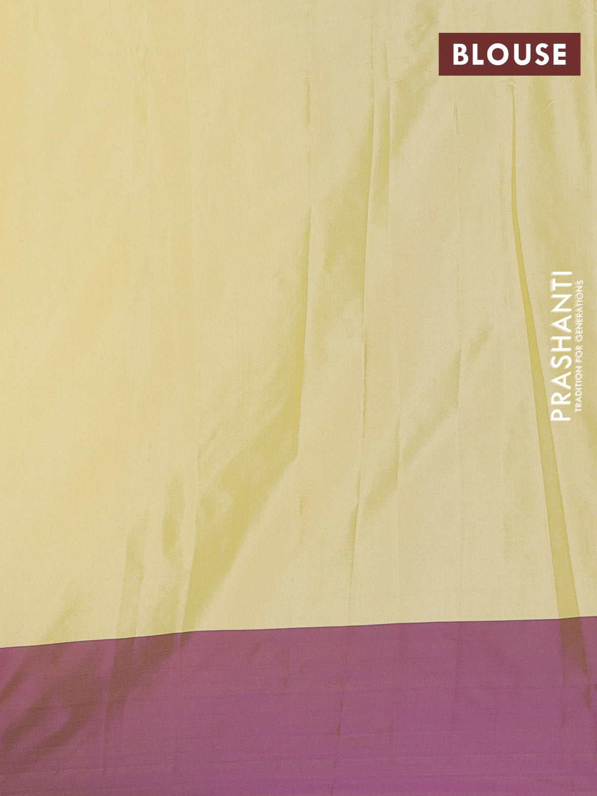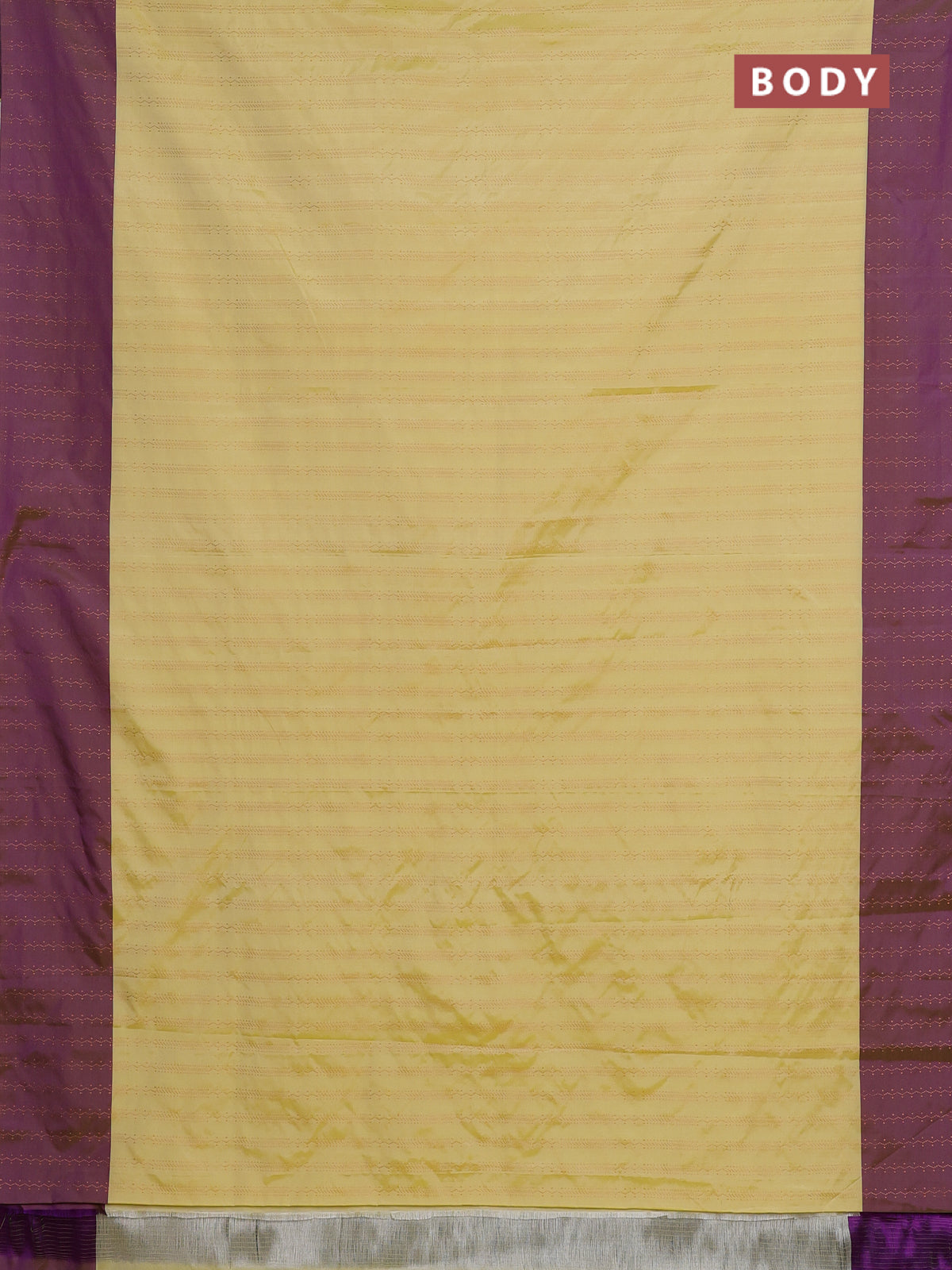 Arani semi silk saree pale yellow and purple with allover copper zari weaves and zari woven border
