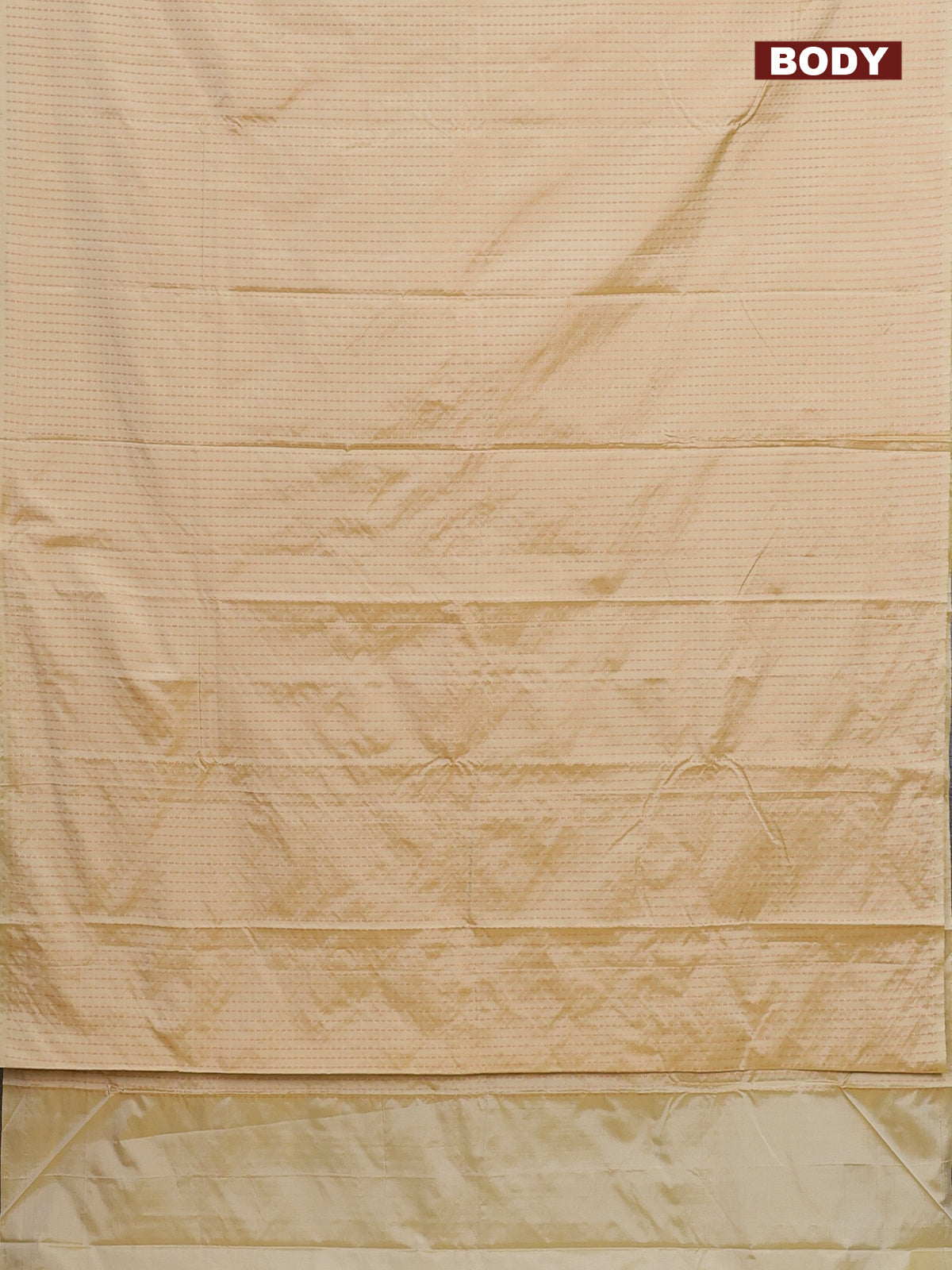 Arani semi silk saree pale yellow with allover copper zari weaves in borderless style