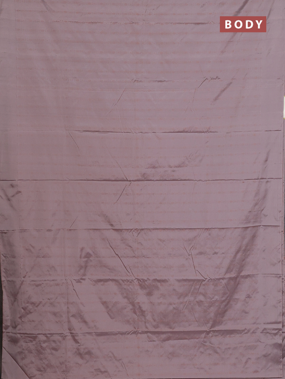 Arani semi silk saree pastel pink with allover copper zari weaves in borderless style