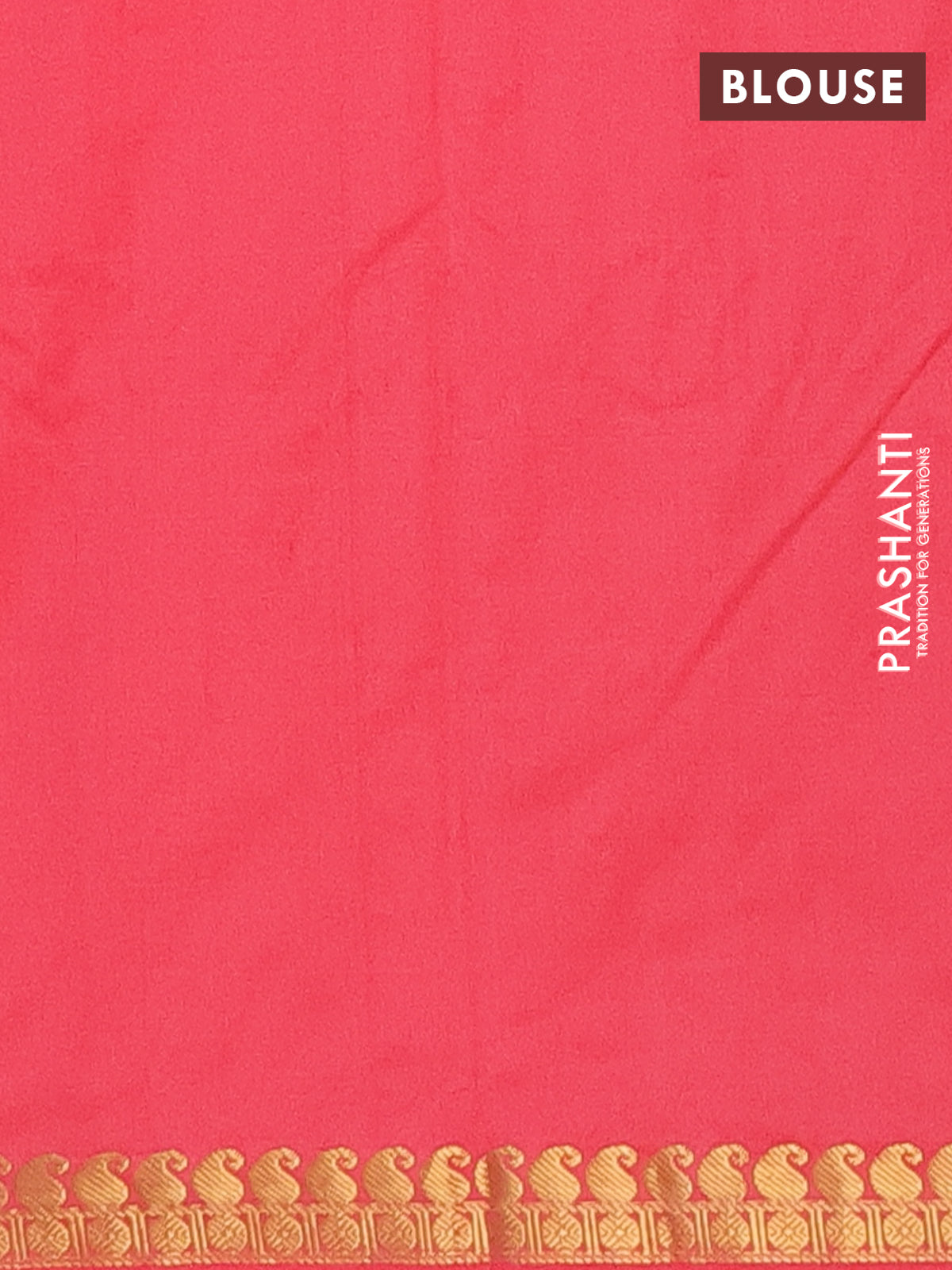Arani semi silk saree peach shade with rudhraksha & paisley zari woven buttas and zari woven border