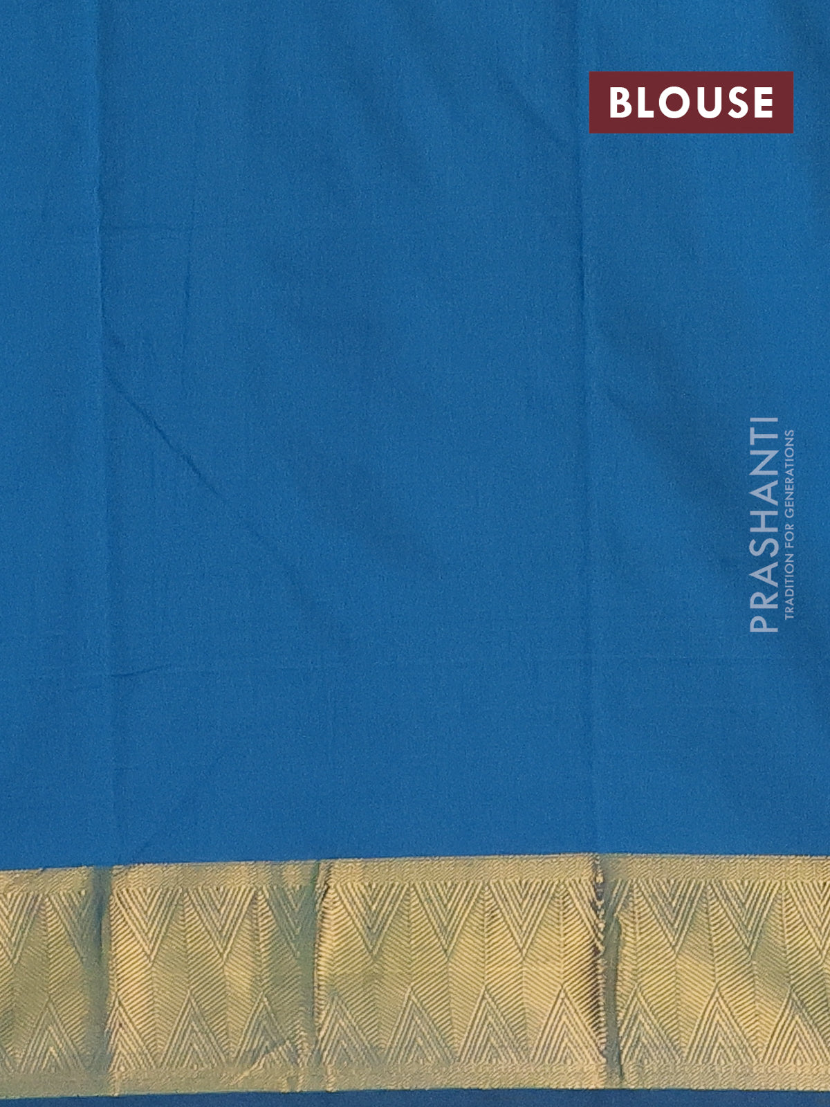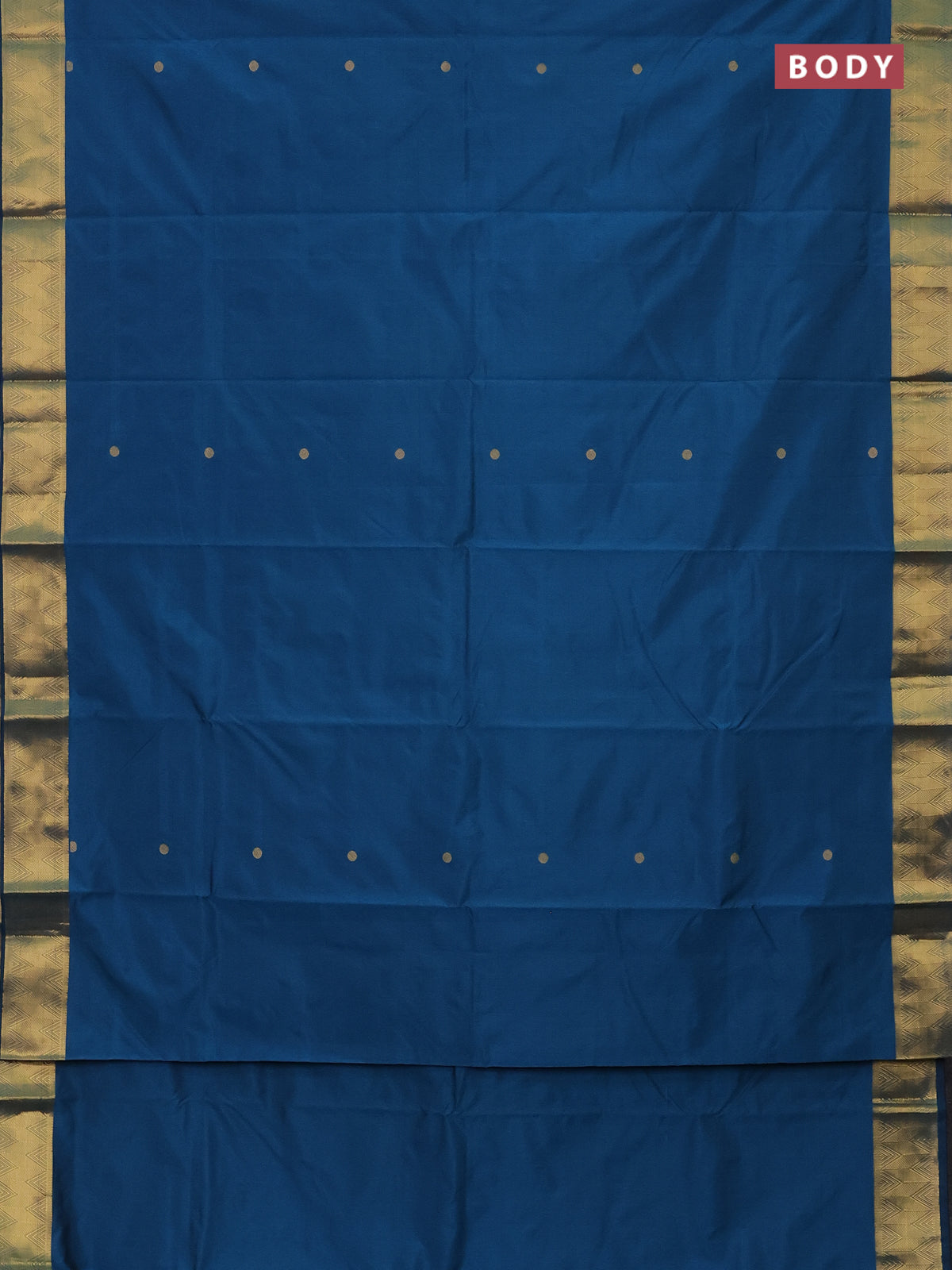 Arani semi silk saree peacock blue with zari woven rudhraksha buttas and zari woven border
