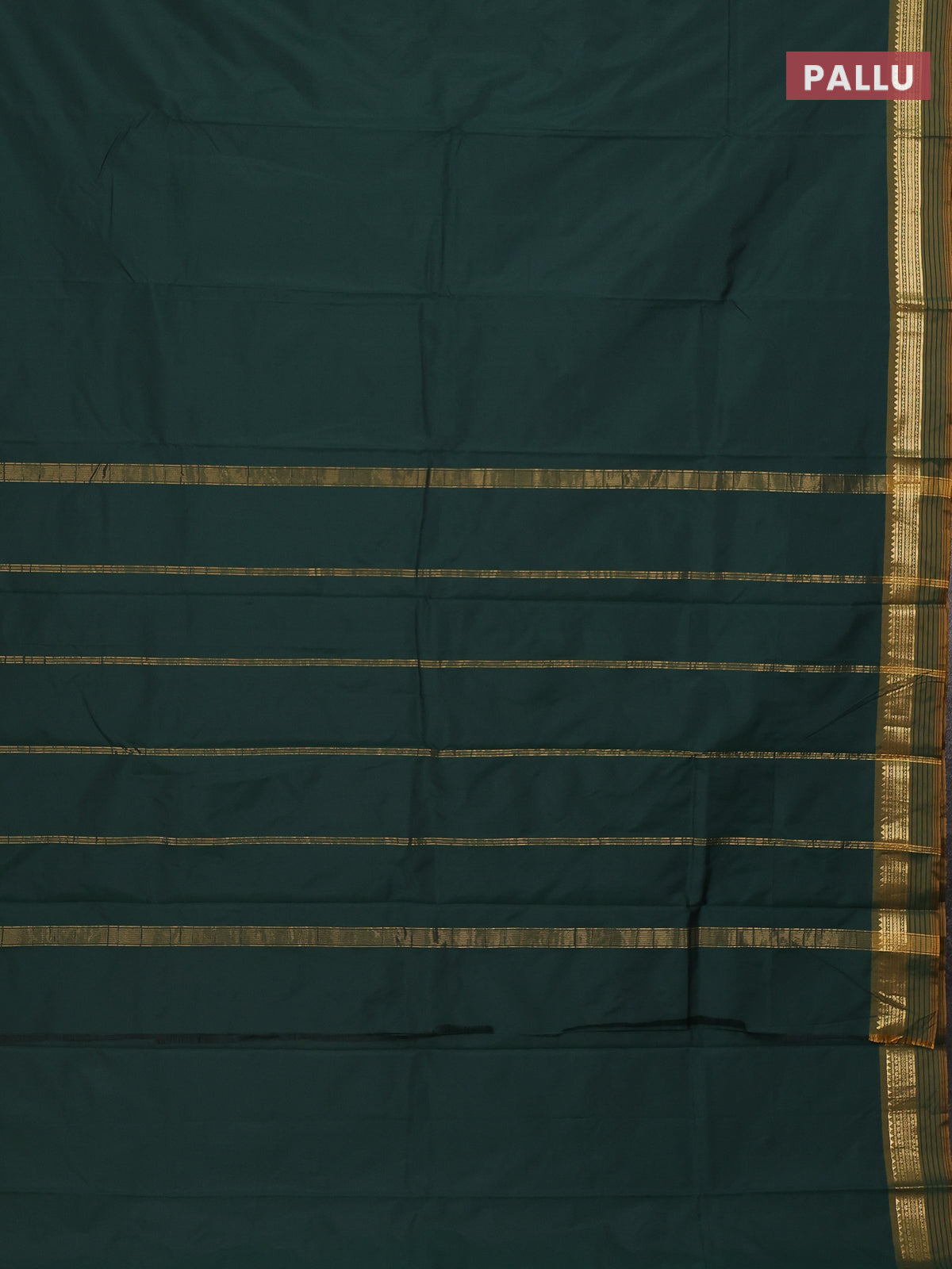 Arani semi silk saree peacock green and dual shade of yellow with plain body and zari woven simple border