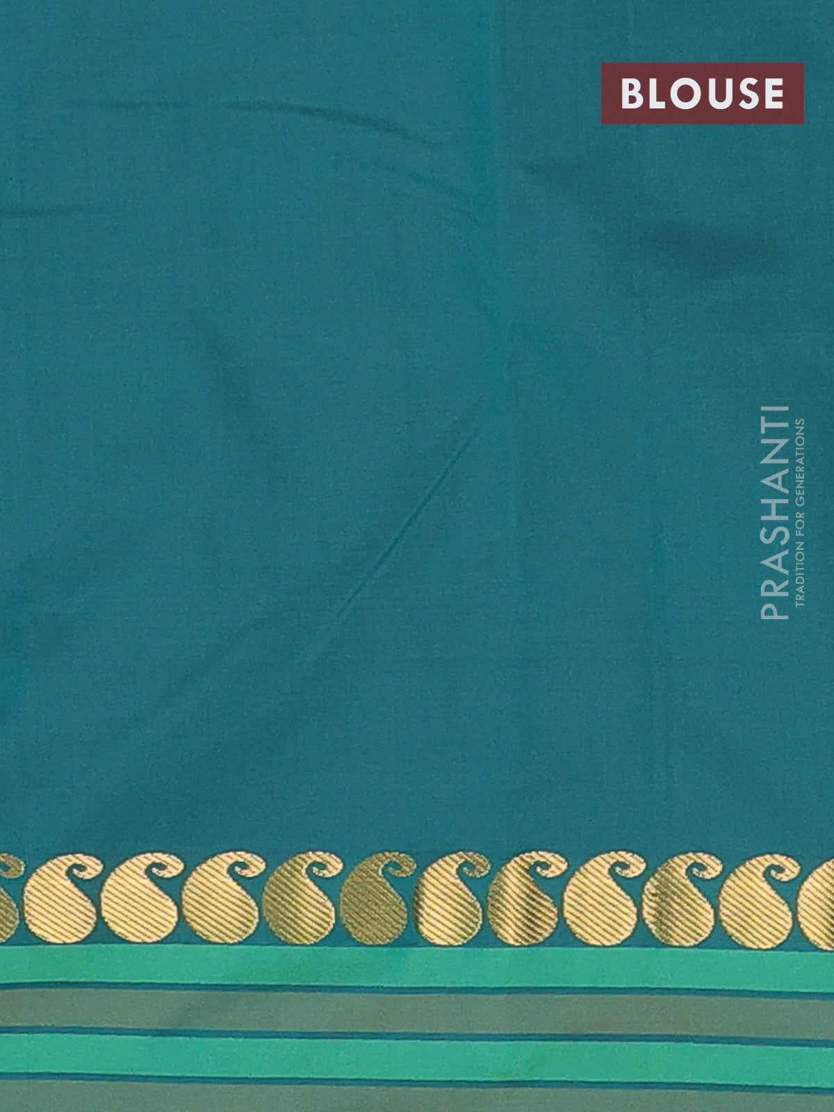 Arani semi silk saree peacock green and green with plain body and paisley zari woven simple border