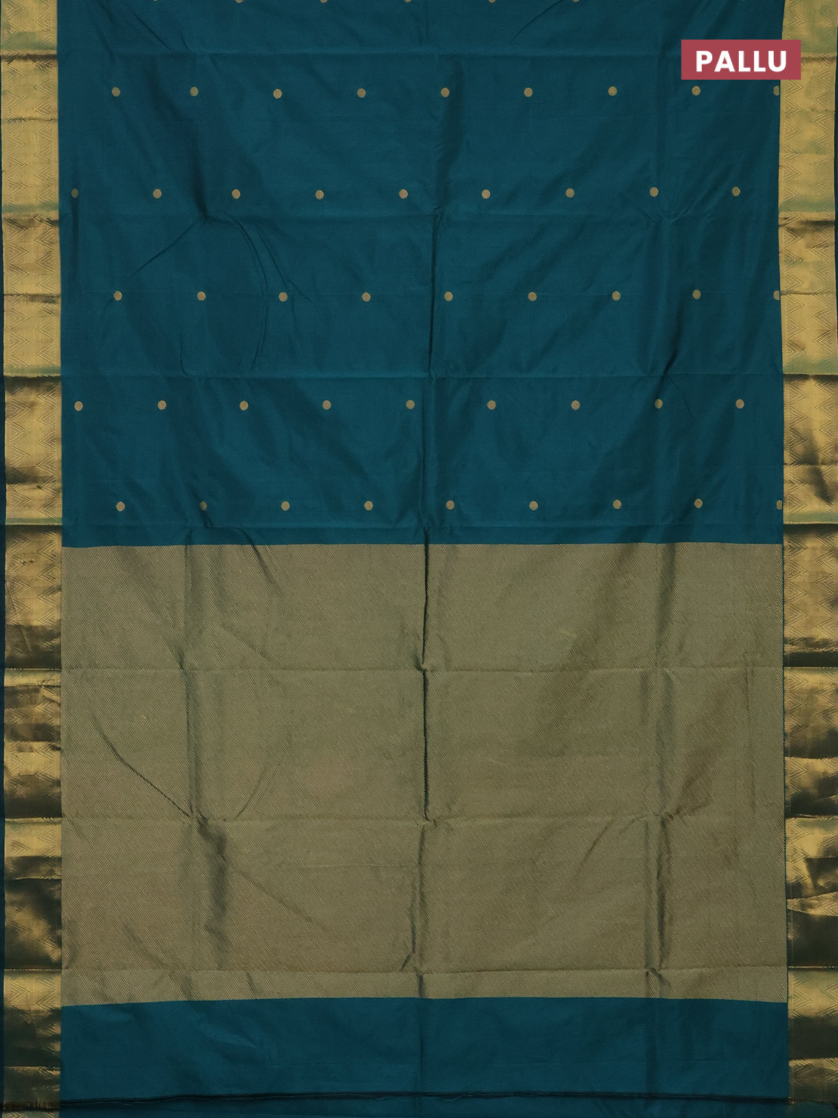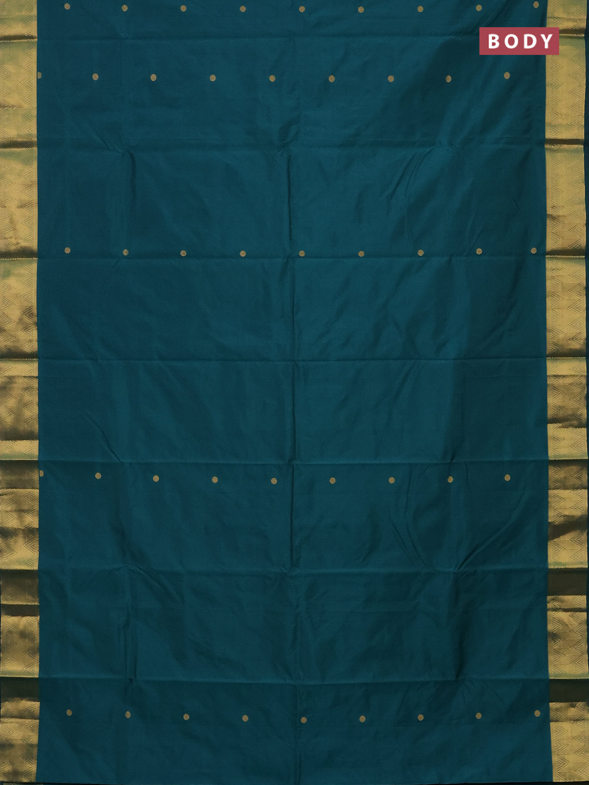 Arani semi silk saree peacock green with zari woven rudhraksha buttas and zari woven border