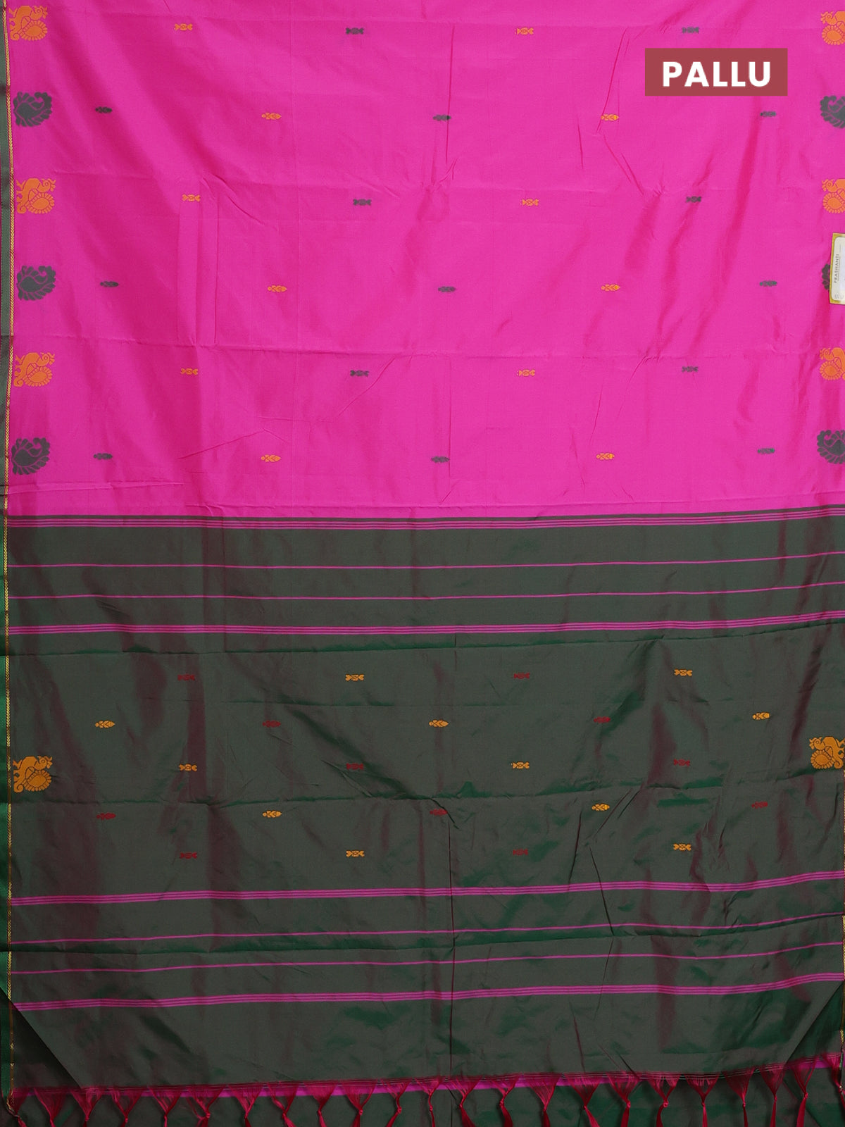 Arani semi silk saree pink and dual shade of green with thread woven buttas and thread woven butta border