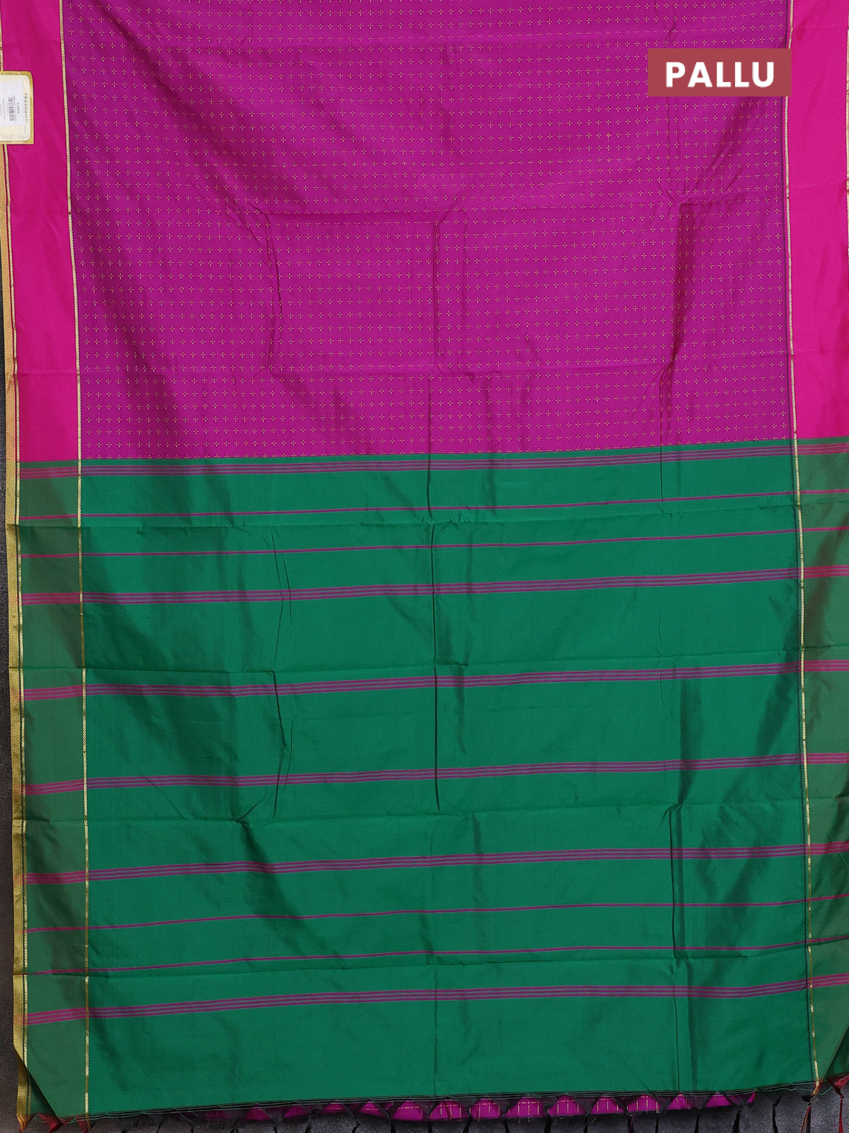 Arani semi silk saree purple and green with allover thread weaves and rettapet zari woven border`