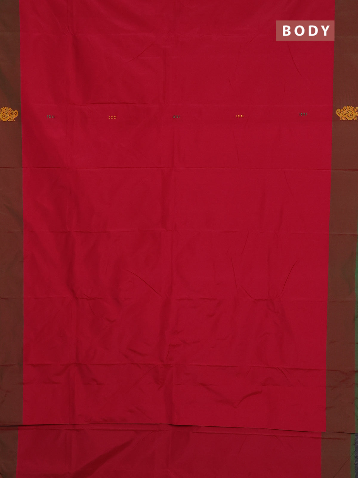 Arani semi silk saree reddish pink and dual shade of green with thread woven buttas and thread woven butta border
