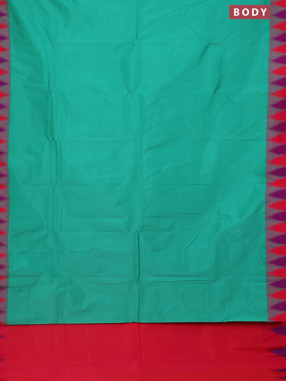 Arani semi silk saree teal green and dual shade of bluish pink with plain body and temple design border