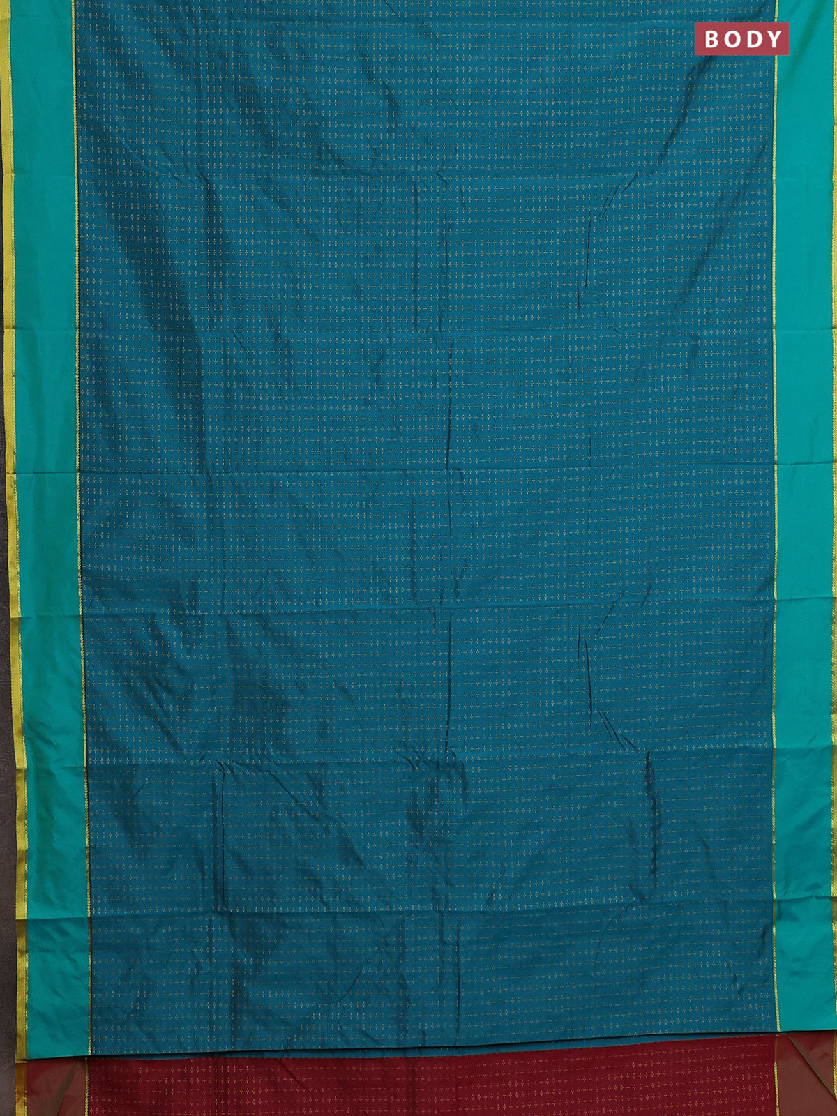 Arani semi silk saree teal green and dual shade of maroonish green with allover thread weaves and rettapet zari woven border`