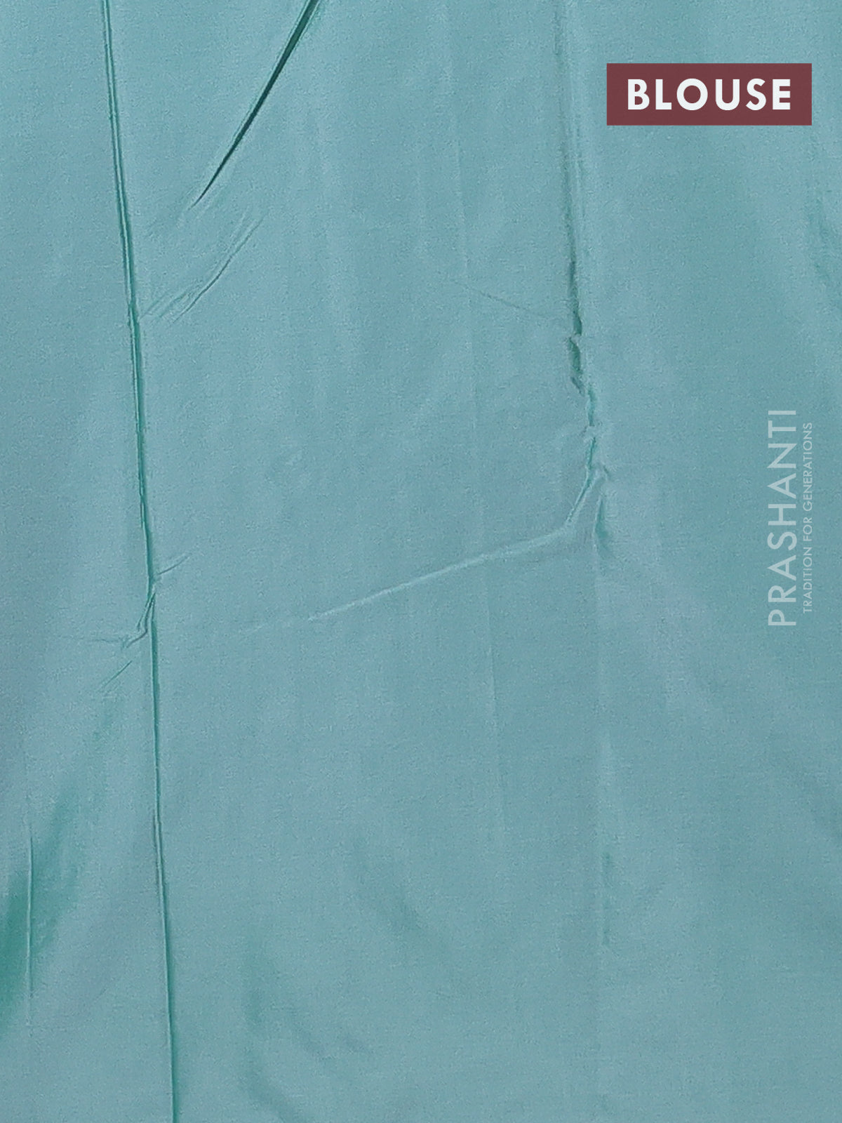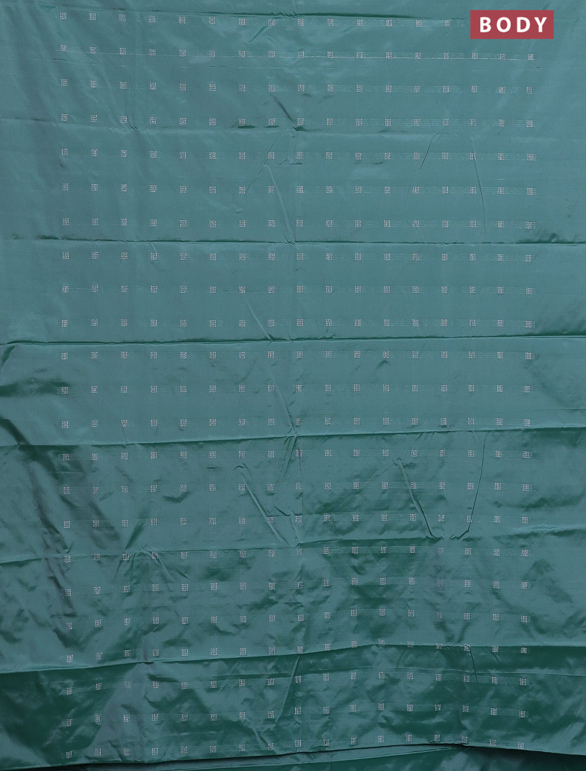 Arani semi silk saree teal green with silver zari woven buttas in borderless style