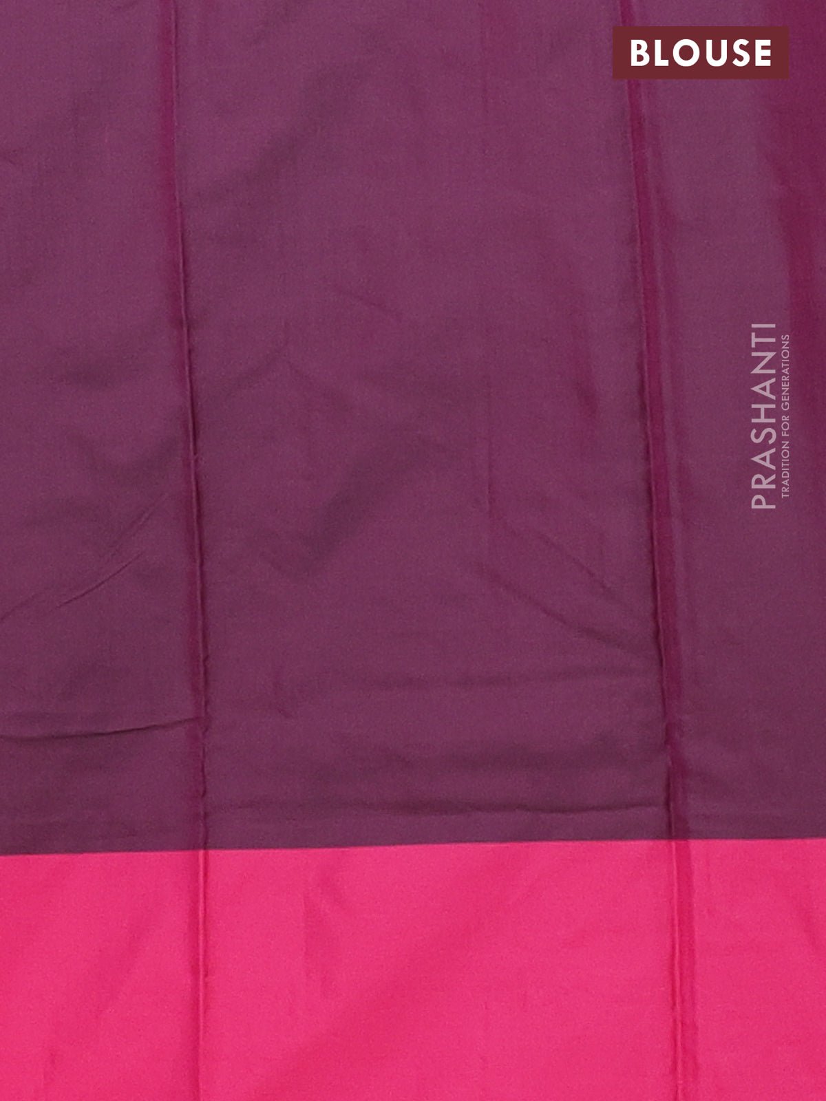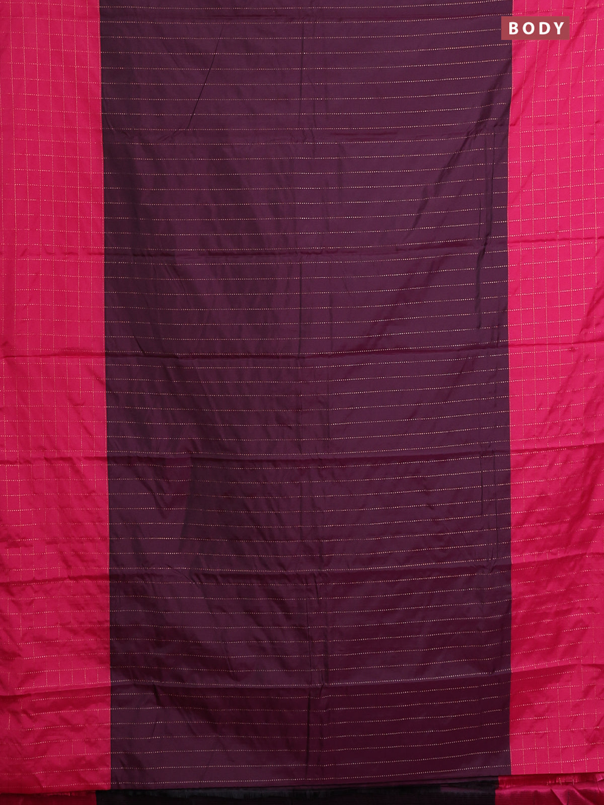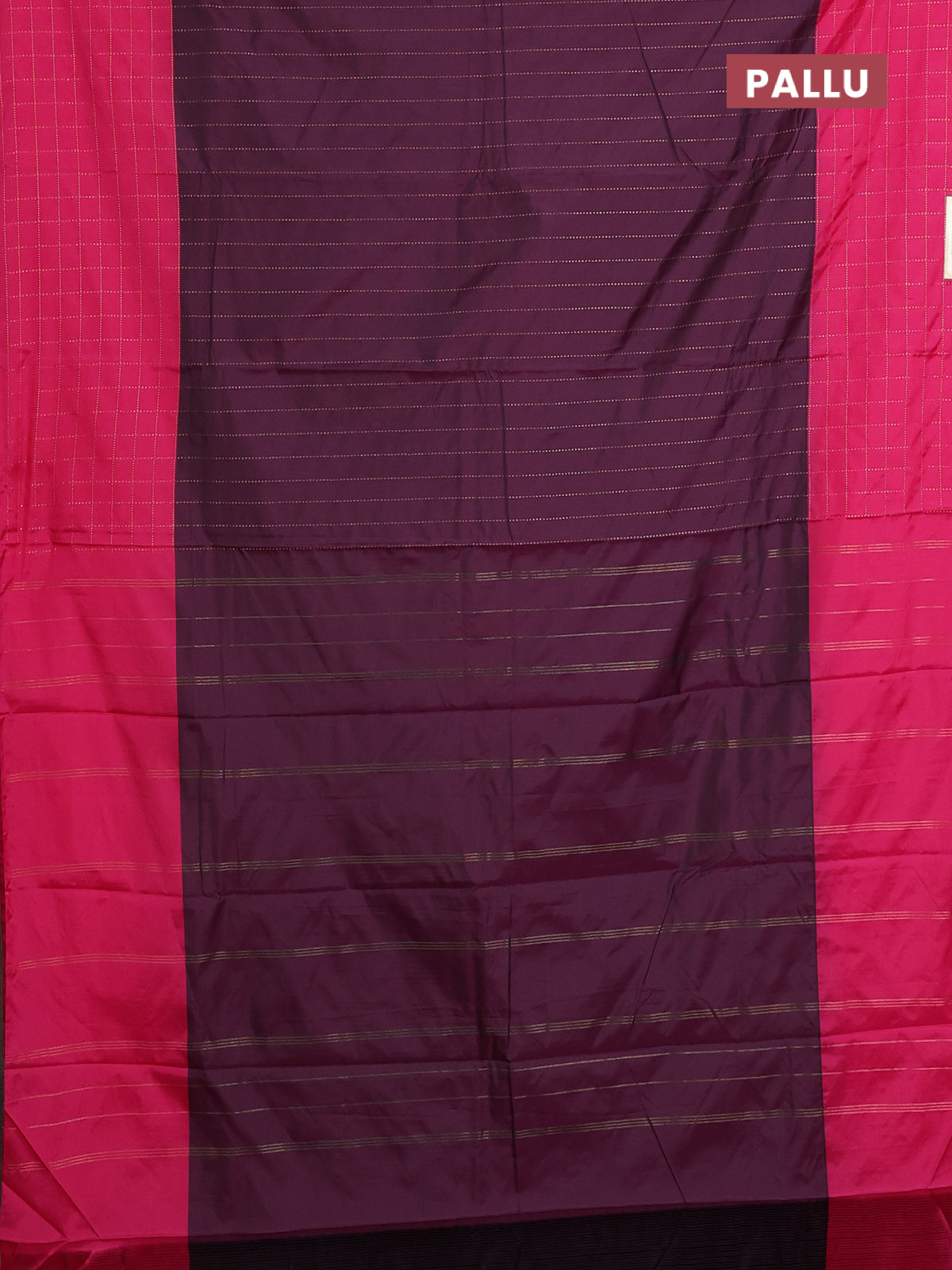 Arani semi silk saree wine shade and pink with allover copper zari weaves and zari checked border
